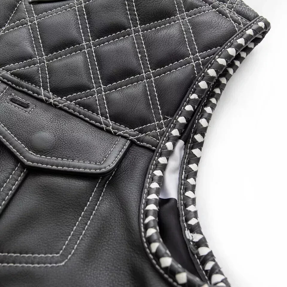 Men's Black Leather Club Vest - Real Cowhide with American Flag Lining, Perfect