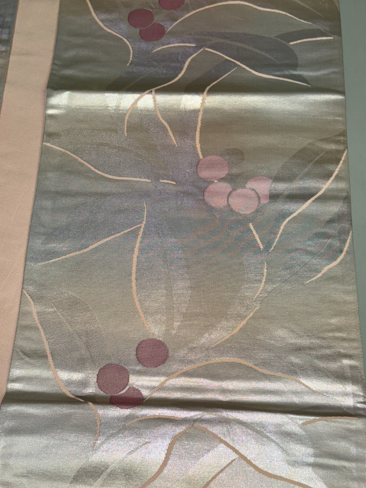 как выглядит Japanese Vintage Kimono Fukuro Obi silk silver expensive tradition 163.7x12.2in фото