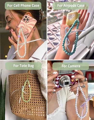 как выглядит Phone Charm Pearl Beaded Charms Strap Handmade Ribbion Bow Phone Charm Pink фото