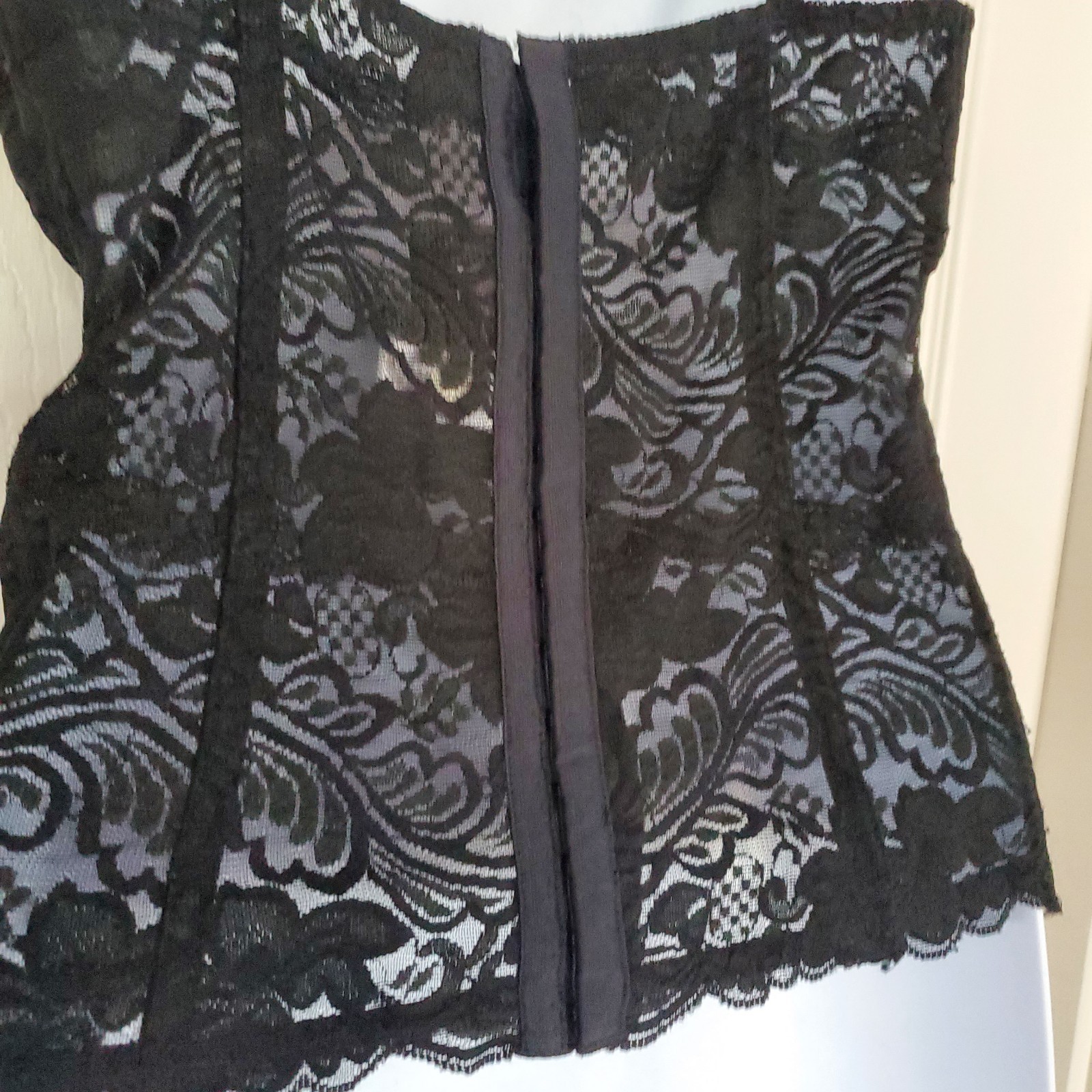 как выглядит Fredericks of Hollywood Black Lace Bustier Corset W/ Rhinestone Buckle Size 36 фото
