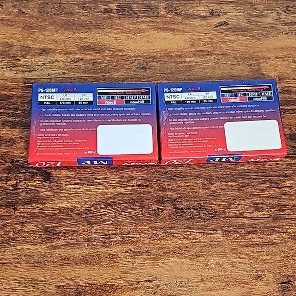 Sony Video 8 MP Standard Grade 120 Minutes Video Cassette Tape Set of 2 New