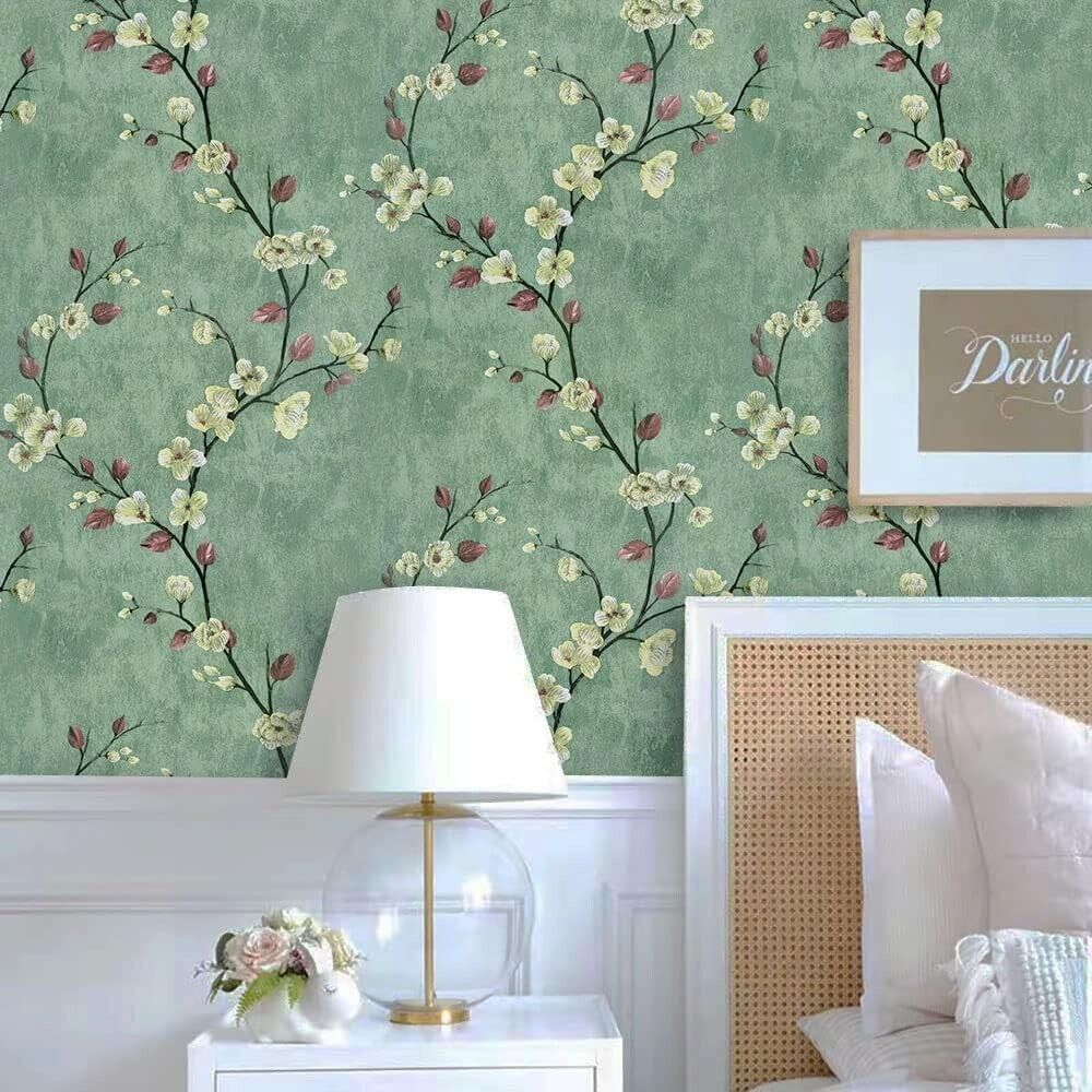 как выглядит Floral Peel and Stick Wallpaper Green Flower Contact Paper, 17.7
