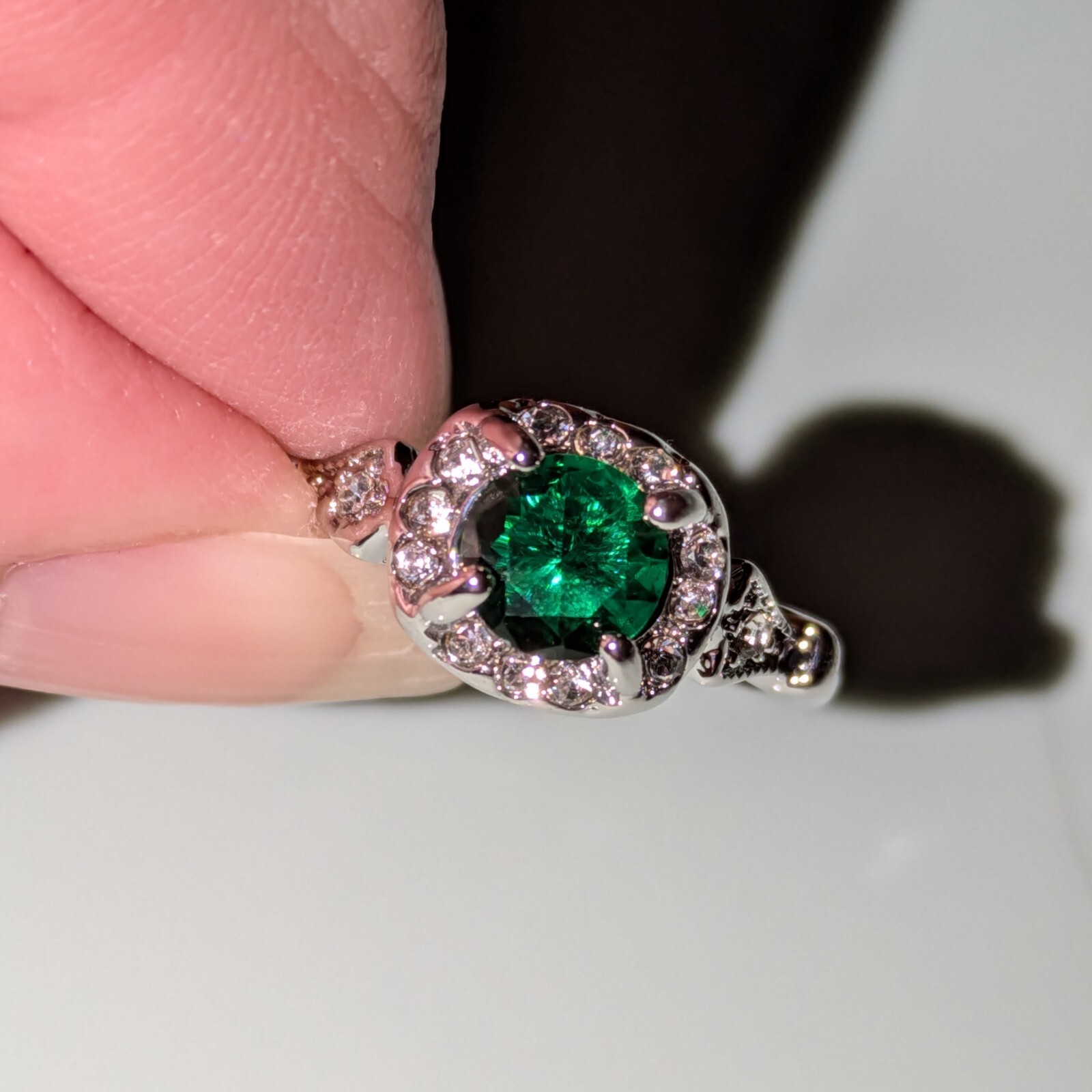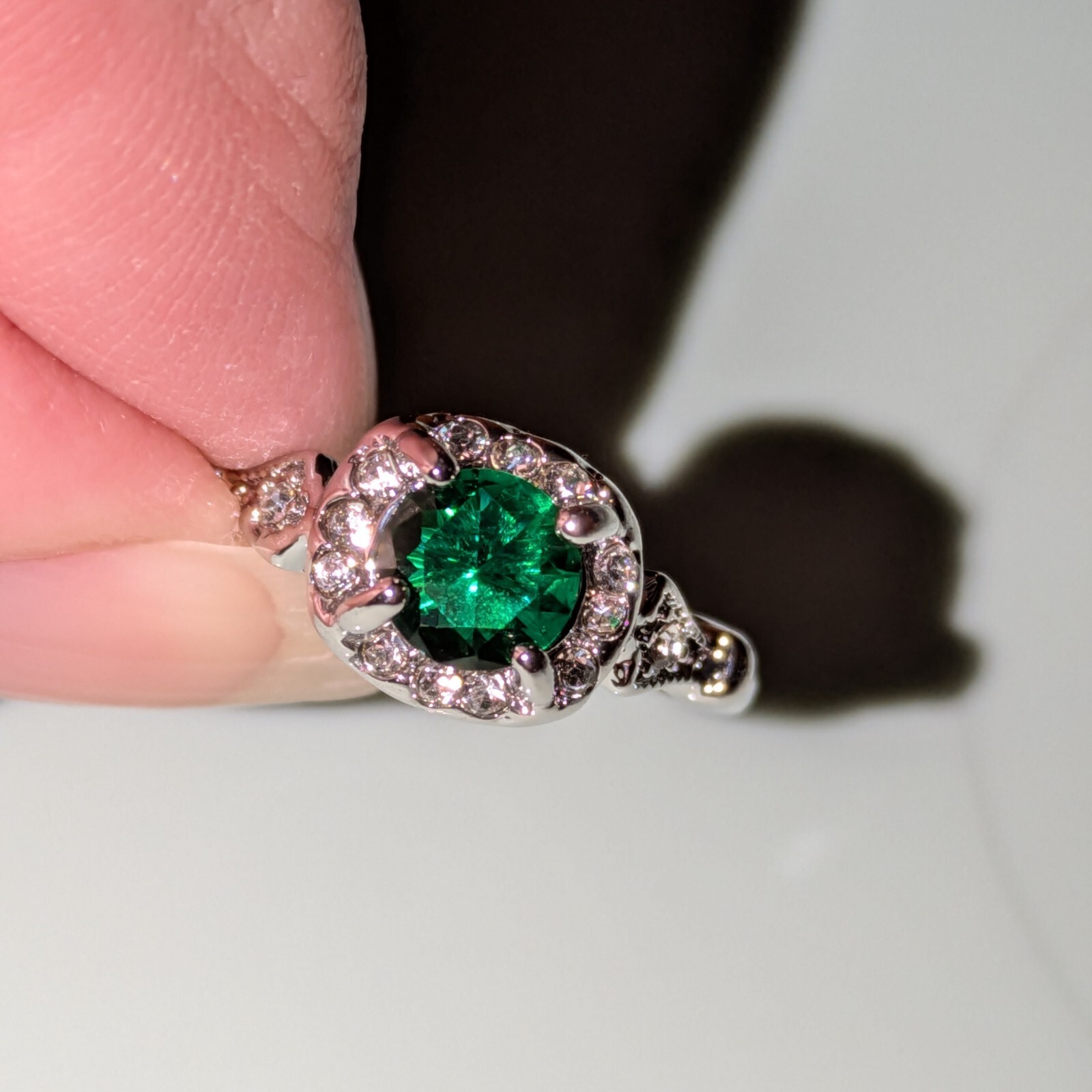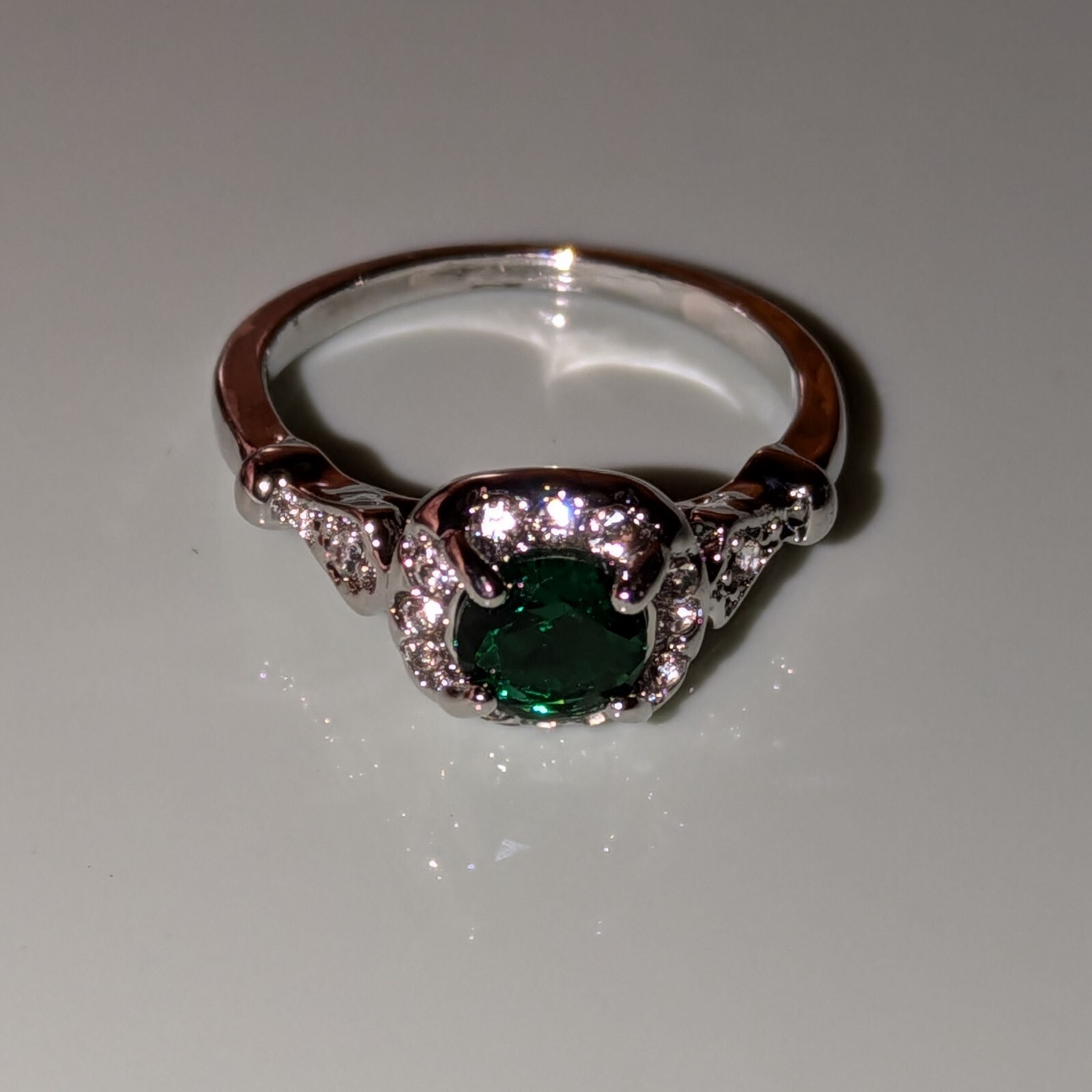 как выглядит Sterling Silver plated And Green Zirconia Ring, Size 8 , New фото