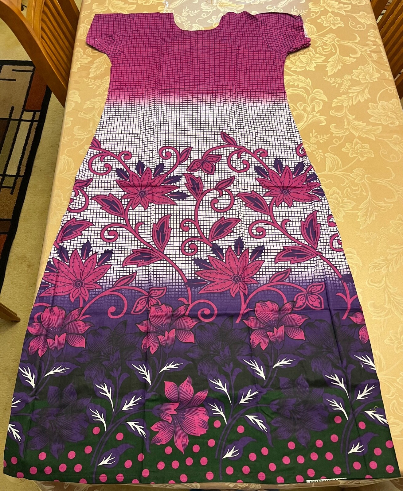 New Magenta Purple Indian Cotton Blend Floral Print Nightgown