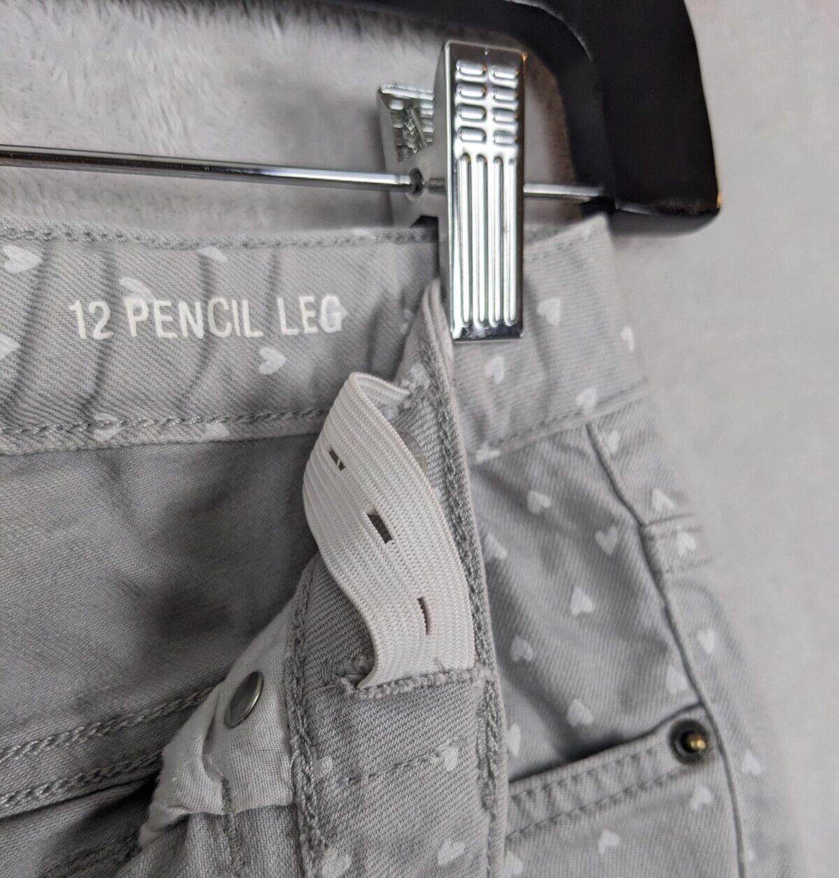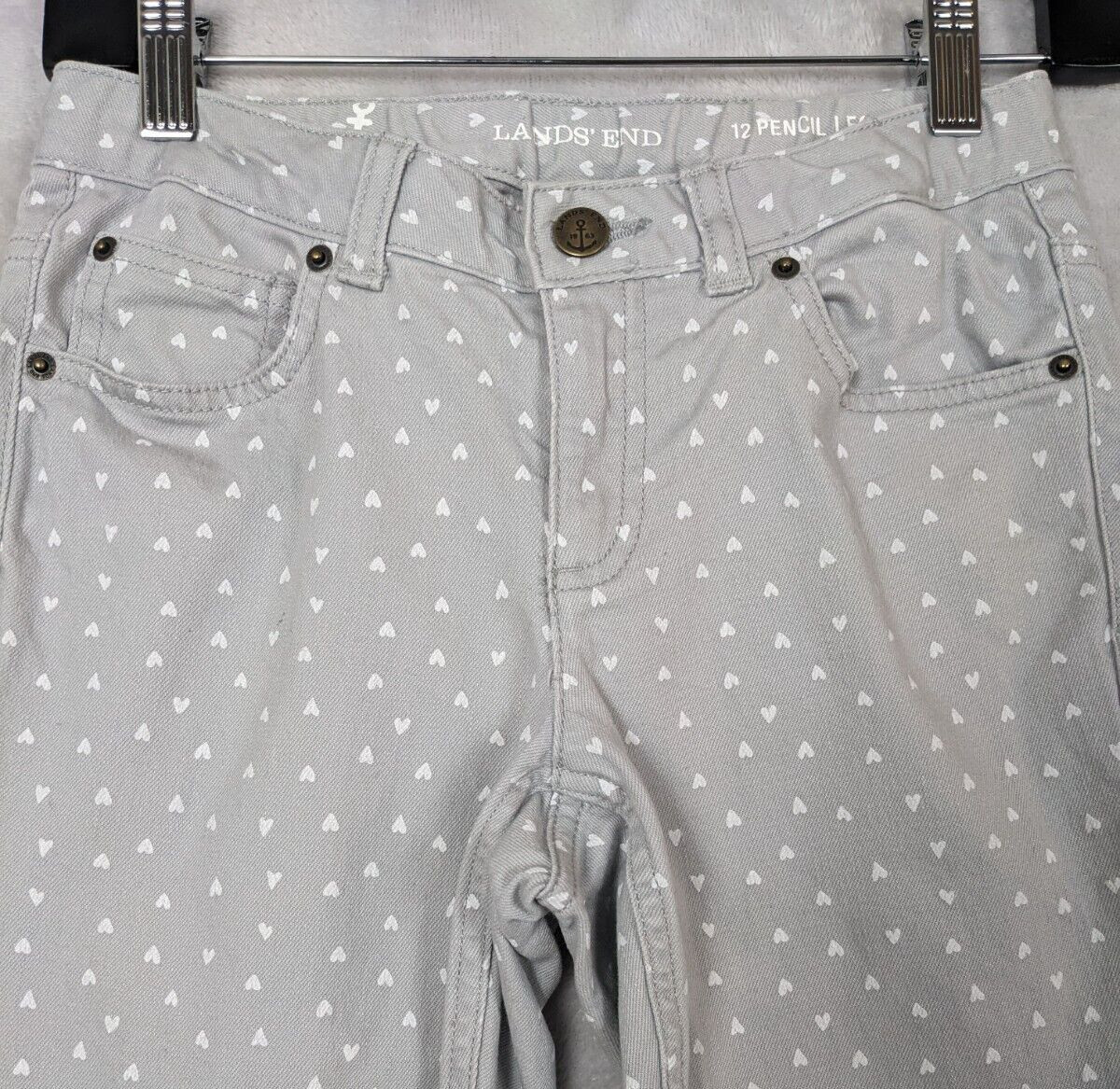 Lands End Girls Pants Gray Heart Adjustable Waist Cotton Pencil Leg Size 12