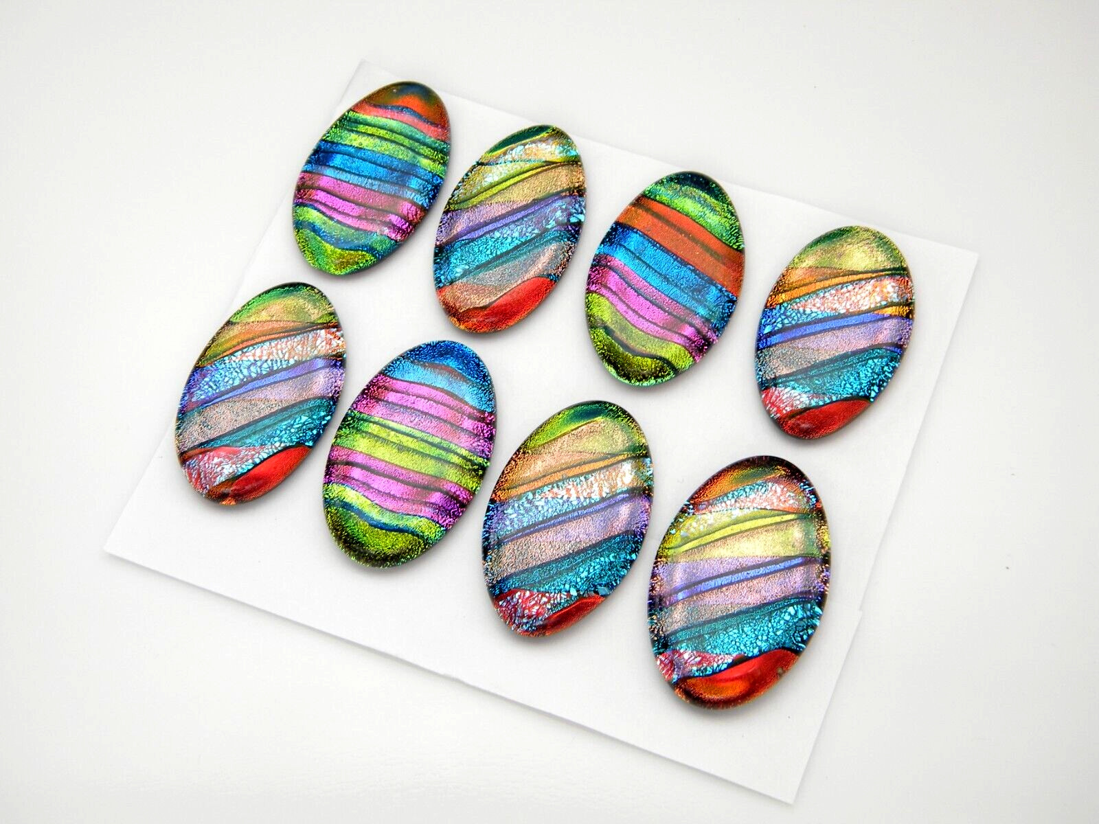 как выглядит MULTI COLORS lot 8 pcs OVAL DICHROIC FUSED GLASS for pendant C13 CABS HANDMADE фото