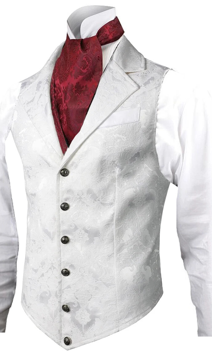 Handmade White Mens Victorian Suit Gentleman Vest Steampunk Gothic Waistcoat
