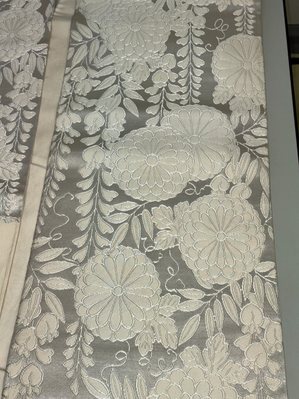 как выглядит Japanese Vintage Kimono Fukuro Obi Silk white expensive embroidery 171.6x12.2in фото