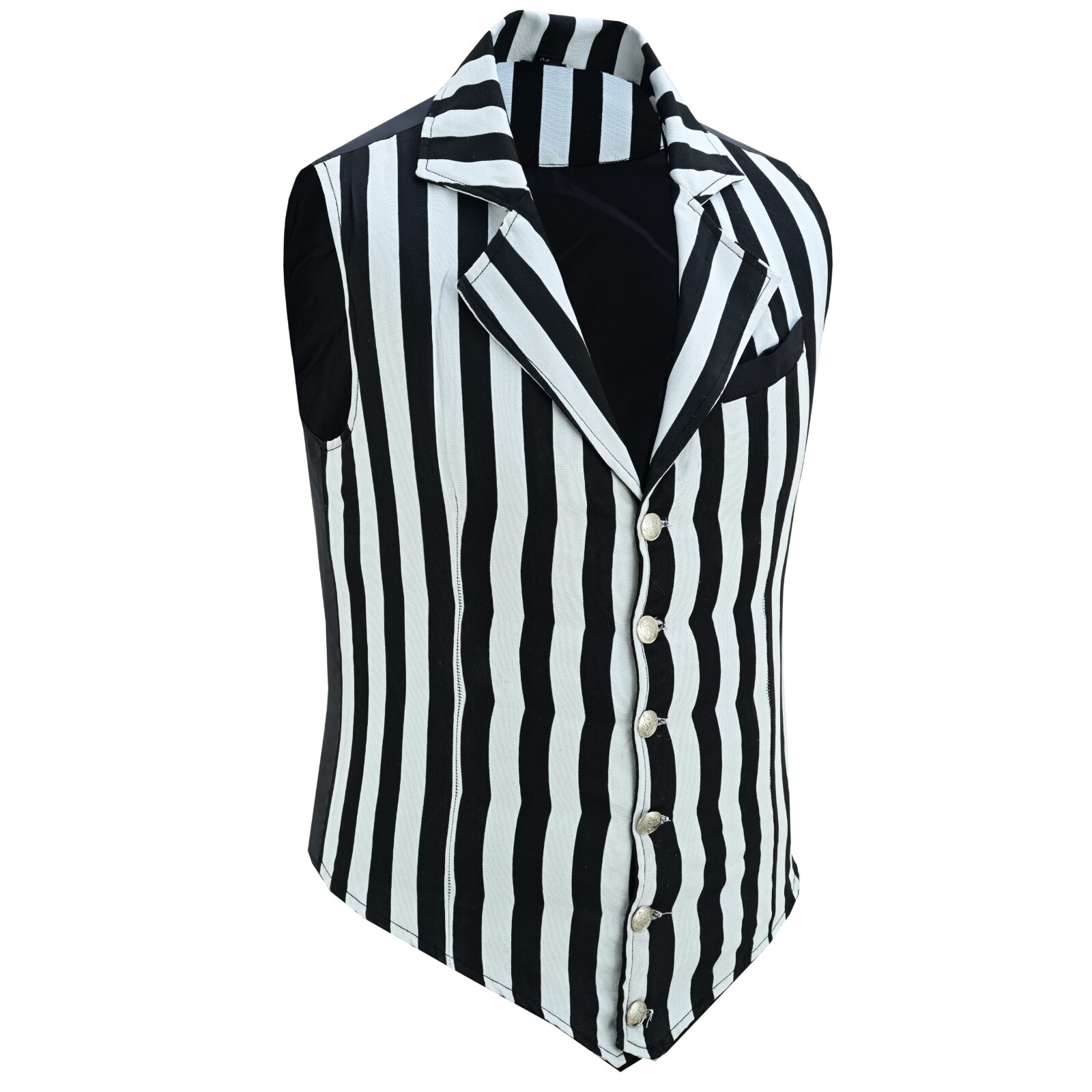 Handmade Black And White Mens Victorian Suit Vest Steampunk Gothic Waistcoat