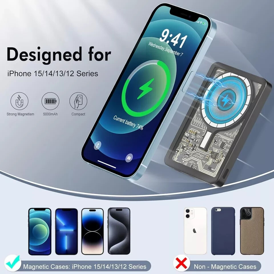 как выглядит Wireless Fast Charger 10000mAh Power Bank Magnetic Battery Pack for iPhone Phone фото
