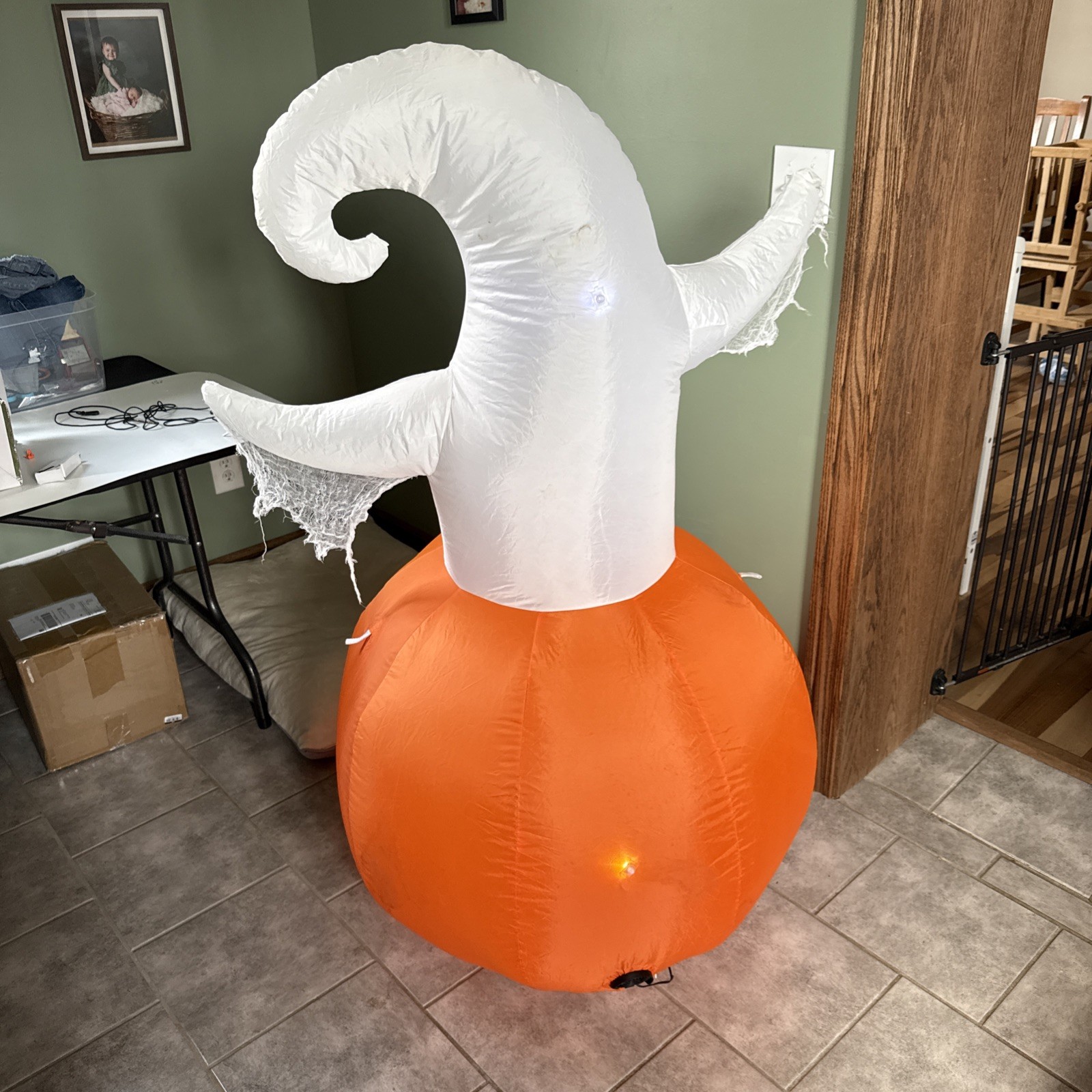 Gemmy Airblown Inflatable 4.5ft Ghost in Pumpkin LED Halloween Yard Decor