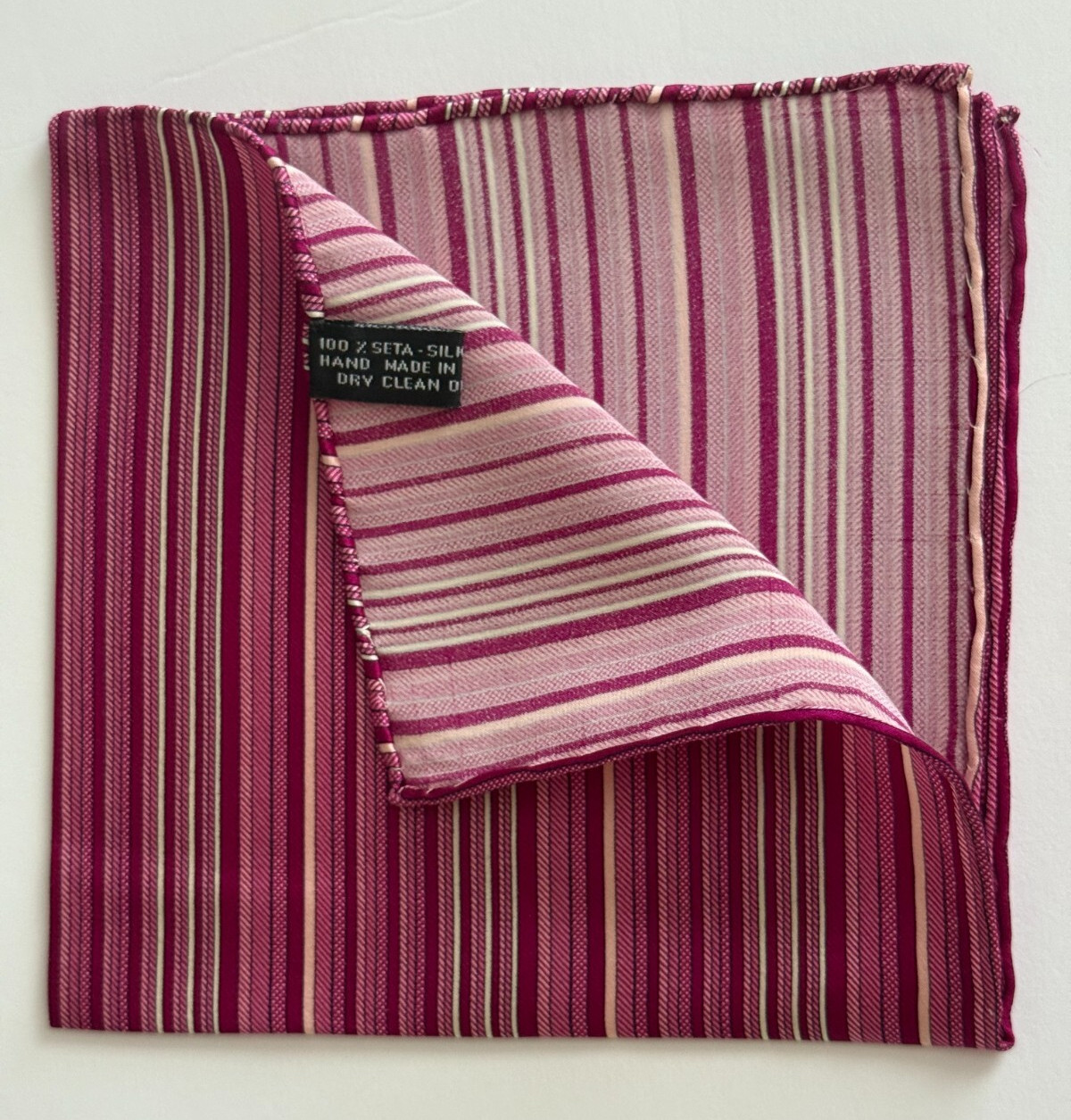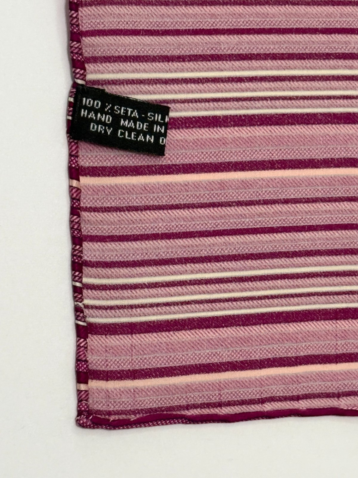 Handmade in Italy Purple Pink Violet Striped Pocket Square 100 Silk