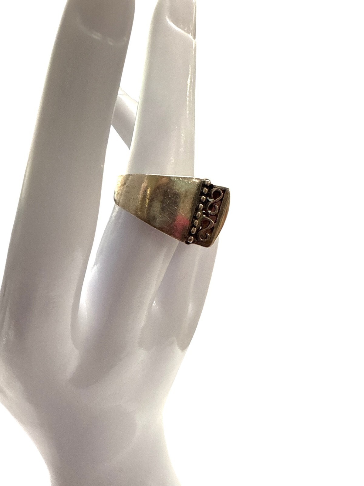 Vintage 925 Sterling Silver Ring Rectangular Stone Ornate Filigree