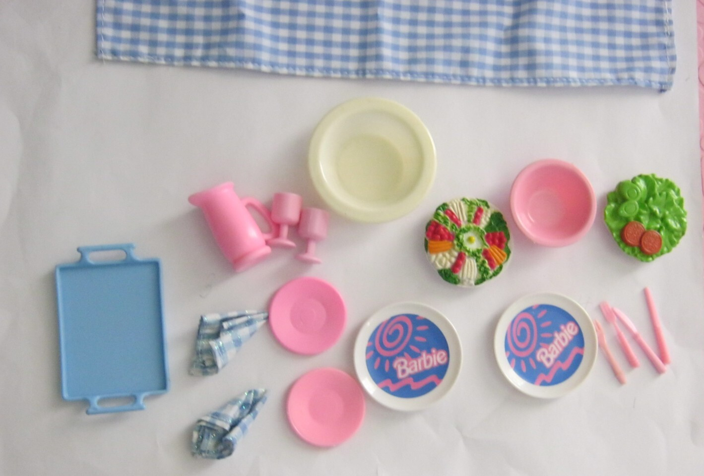 Vintage Barbie Multicolor Dishes Service for 2 Barbie Logo Dishes Lot of 20 pcs
