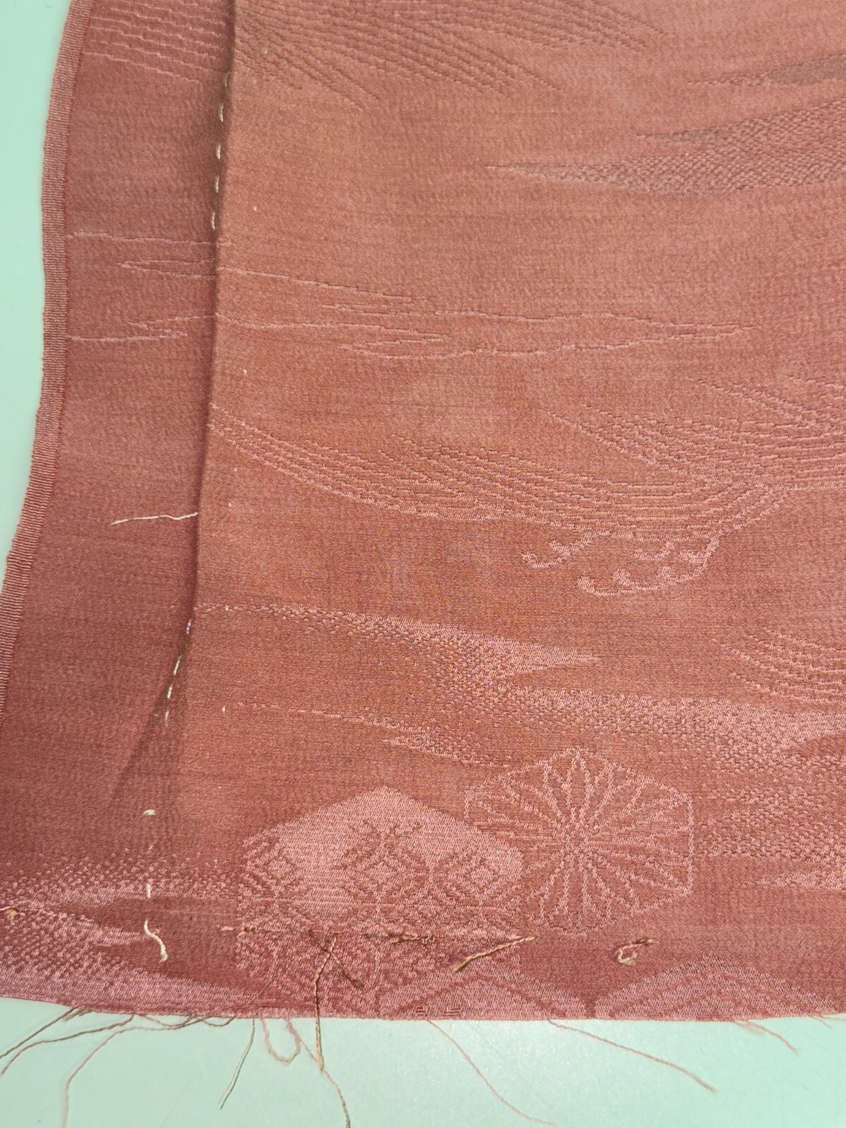 Japanese Vintage Kimono Fabric cloth Boro Silk pink tradition Dirt 77.1x5.51in