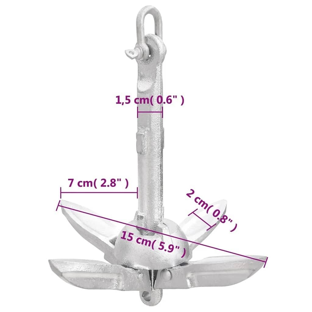 Folding Anchor with Rope Silver 1.5 lb Hot Dip Galvanized Cast Iron