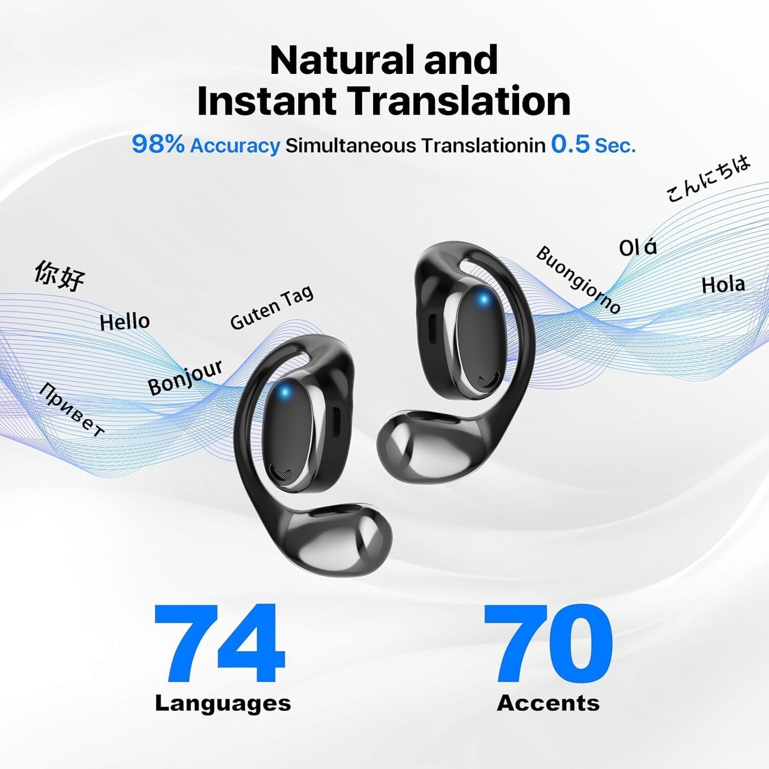 AI OWS Translator Earbuds,Language Translator Earphone 144 Languages, 3-in-1