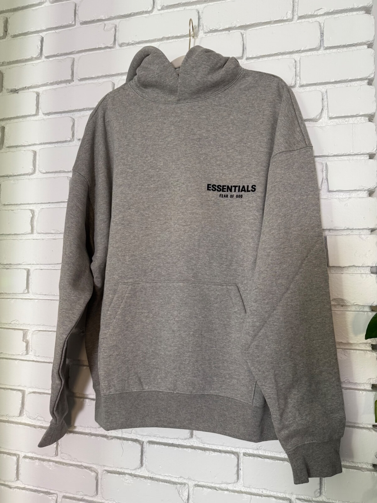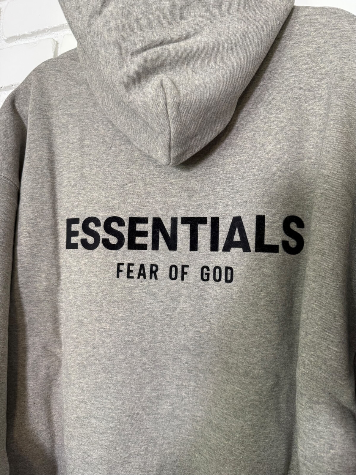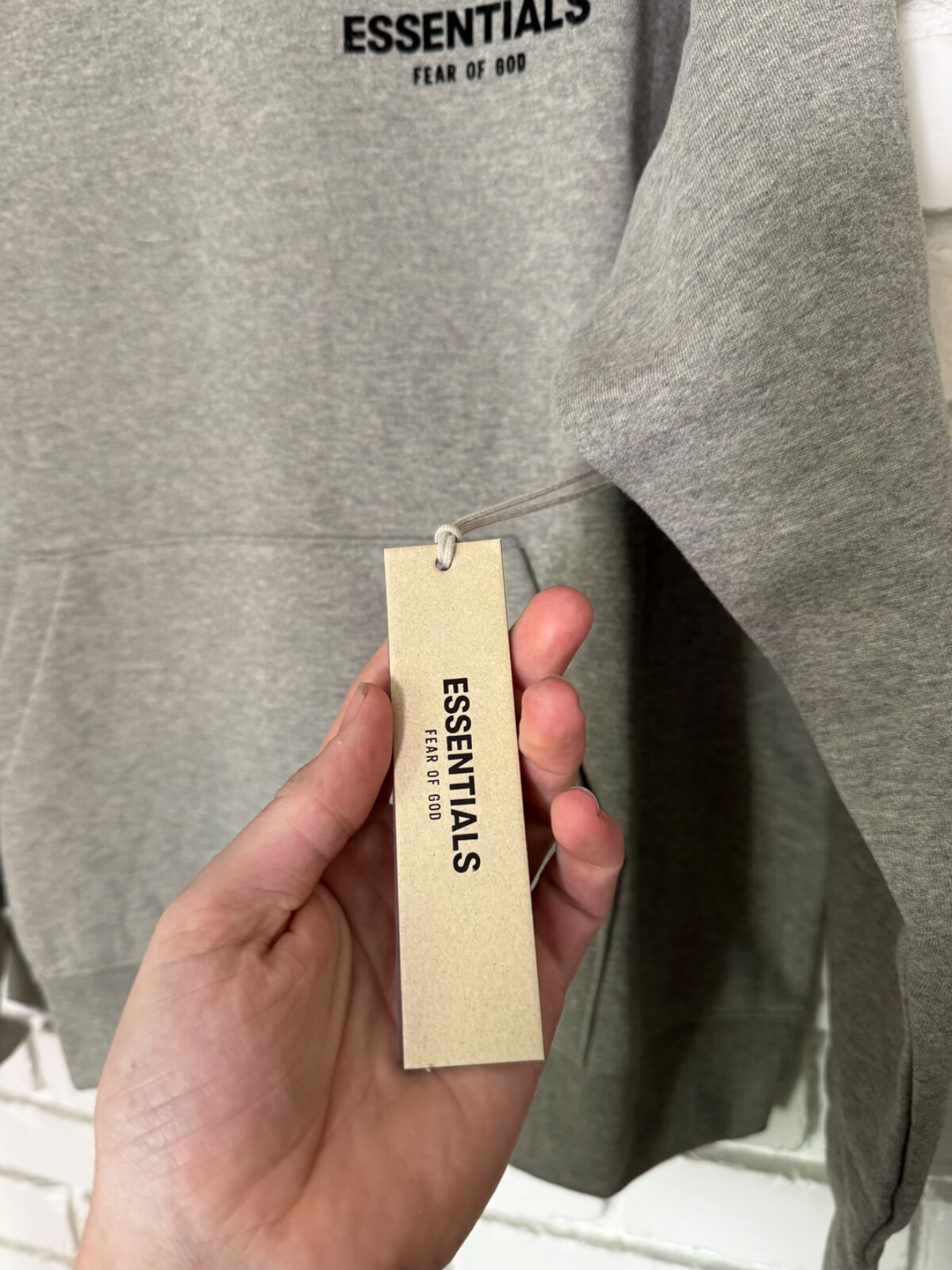 как выглядит Essentials Fear of God Dark Oatmeal Hoodie фото