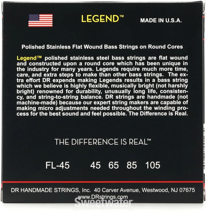 DR Strings Legend Polished Flatwound Stainless Steel Bass Strings - .045-.105