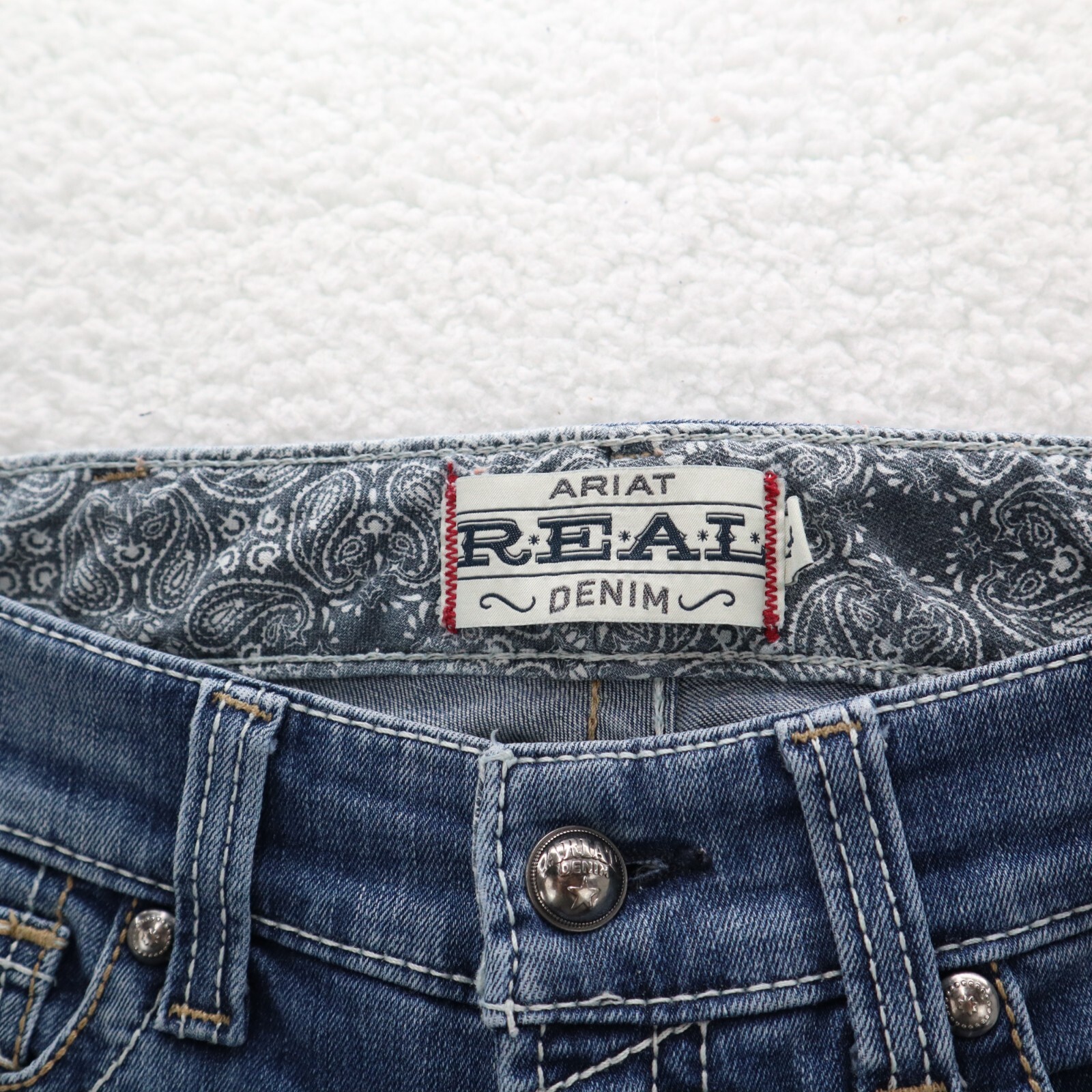 как выглядит Ariat Jeans Women 29R Mid Rise Stretch Whipstitch Bootcut Rainstorm Cowgirl Work фото