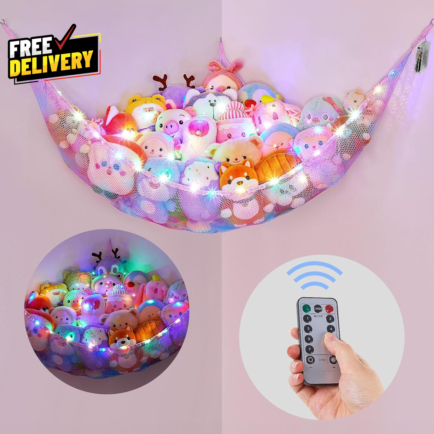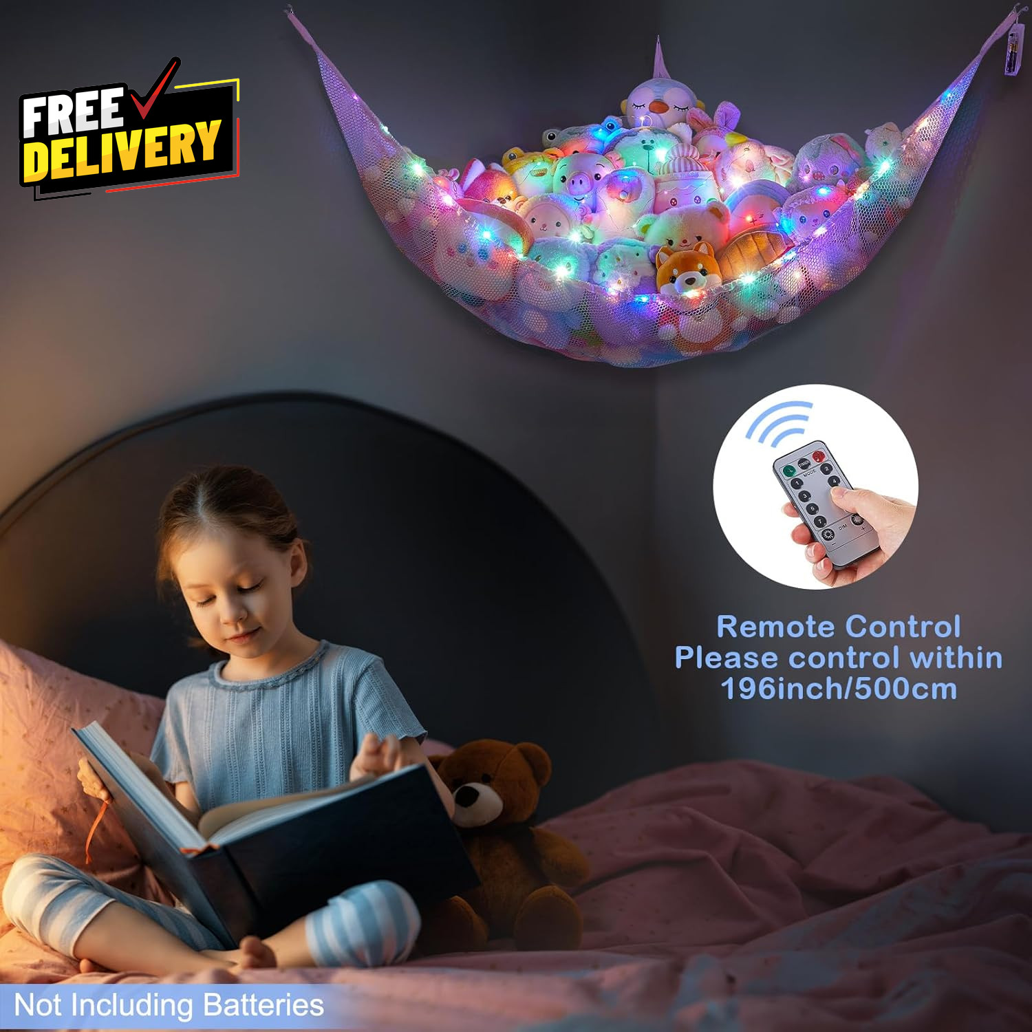 Stuffed Animals Net or Hammock with LED Light Hanging Toy Net Hammock for Stuf..