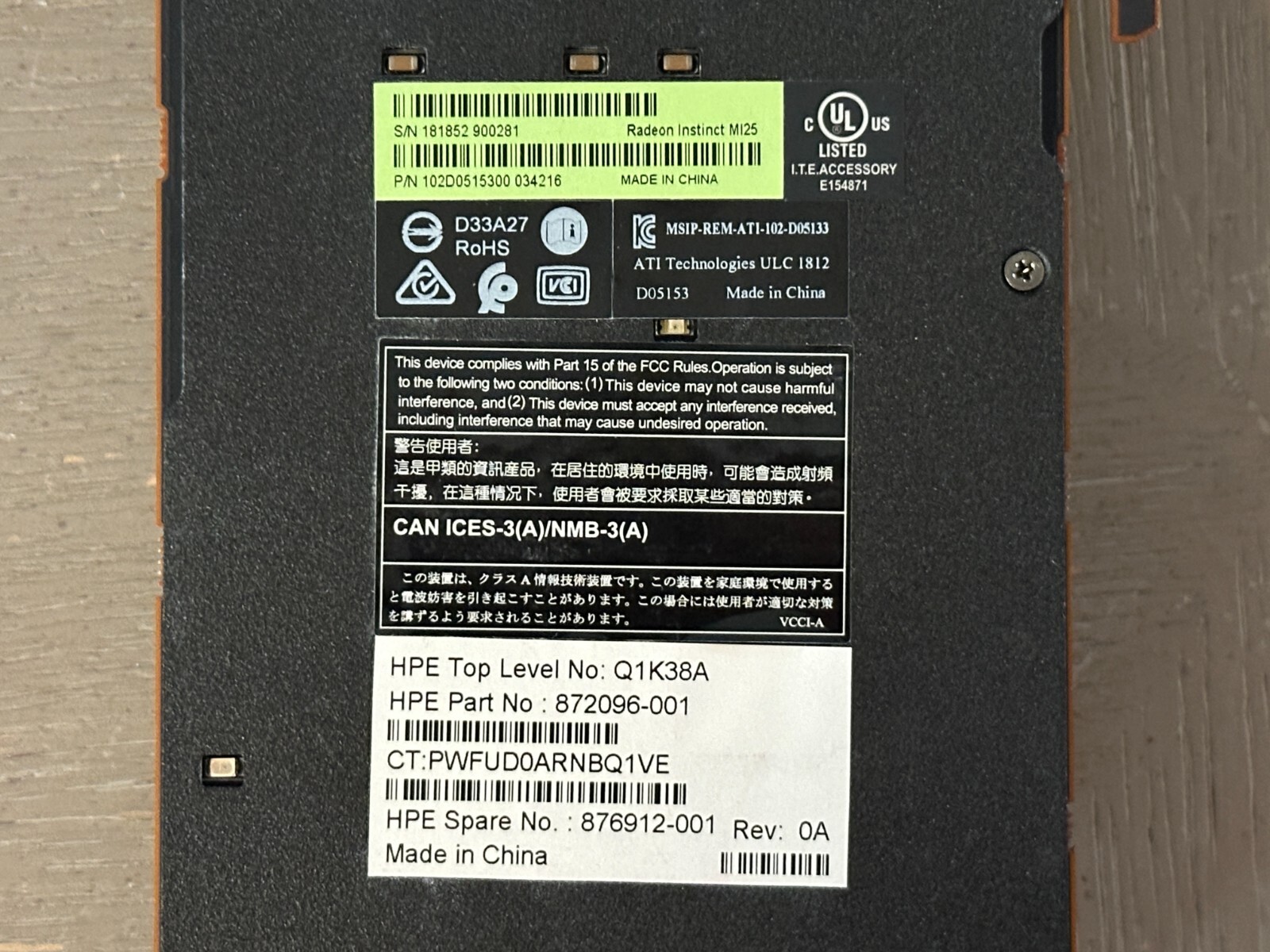 Chipset/GPU Model: AMD Radeon Instinct MI25