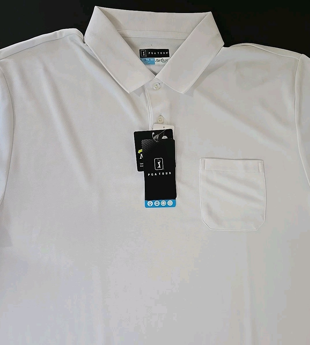 PGA Tour Men's Golf Polo Shirt Size XL Bright White Airflux Short Sleeves New