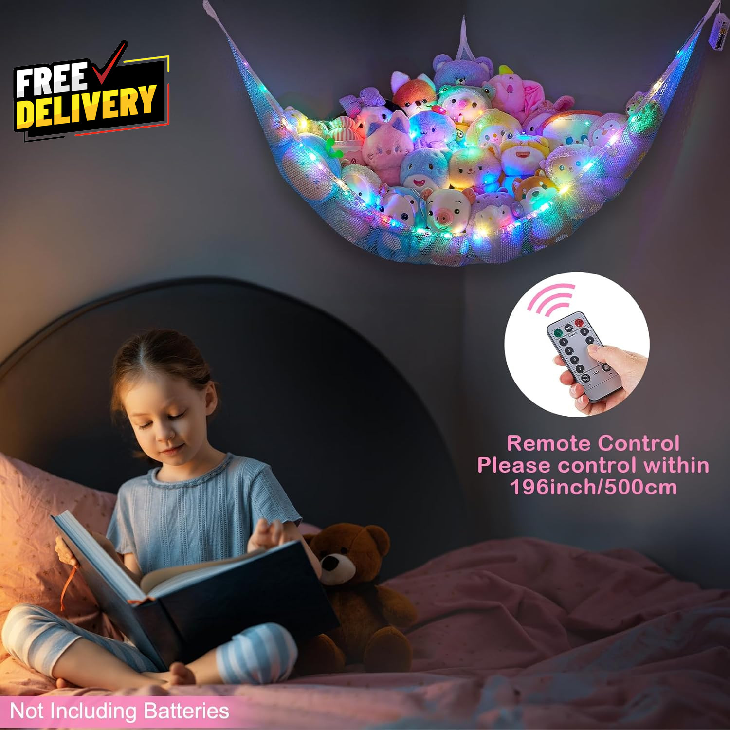 Stuffed Animals Net or Hammock with LED Light Hanging Toy Net Hammock for Stuf..