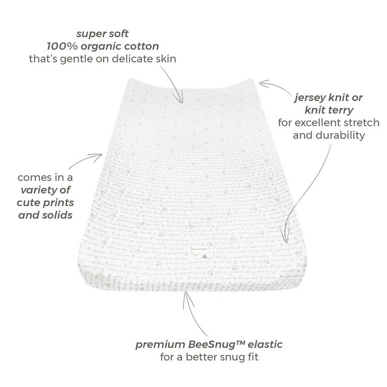 Burt's Bees Baby Changing Pad Cover Organic Cotton Knit Terry, 16x32 Inches