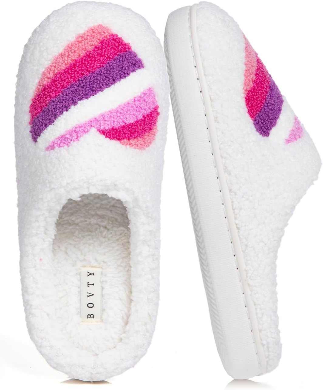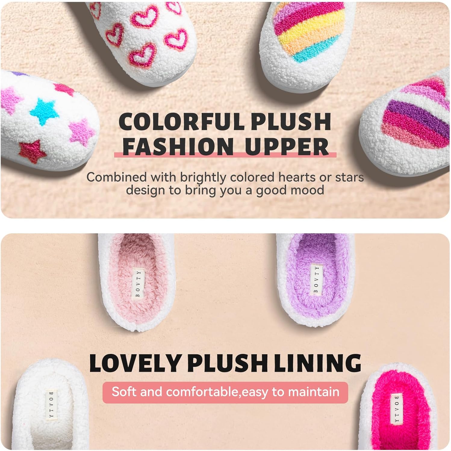 Memory Foam Slippers for Women - House Slip-on with Colorful Hearts Stars...