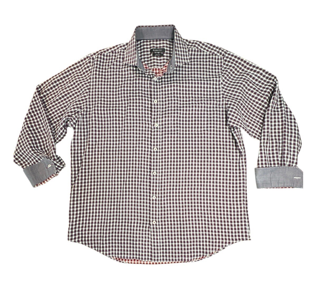 Bugatchi Uomo Flip Cuff Classic Fit 100 Cotton Shirt Size Xtra Large XL Plaid
