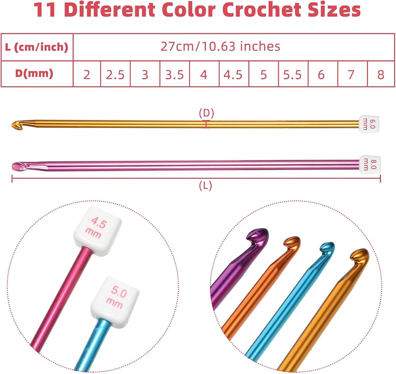 Juego de agujas de crochet tunecinas de aluminio de 2 a 8 mm, agujas de crochet