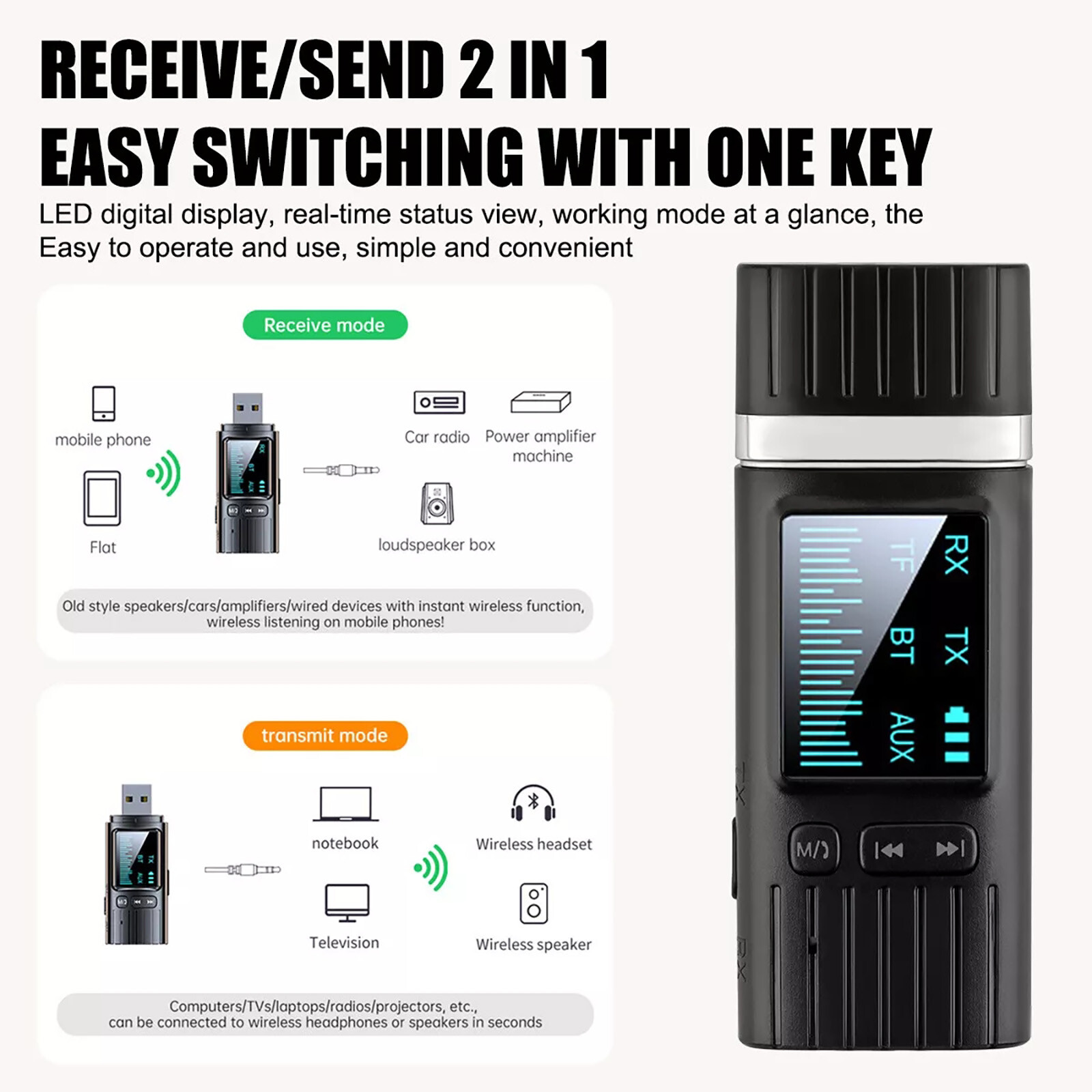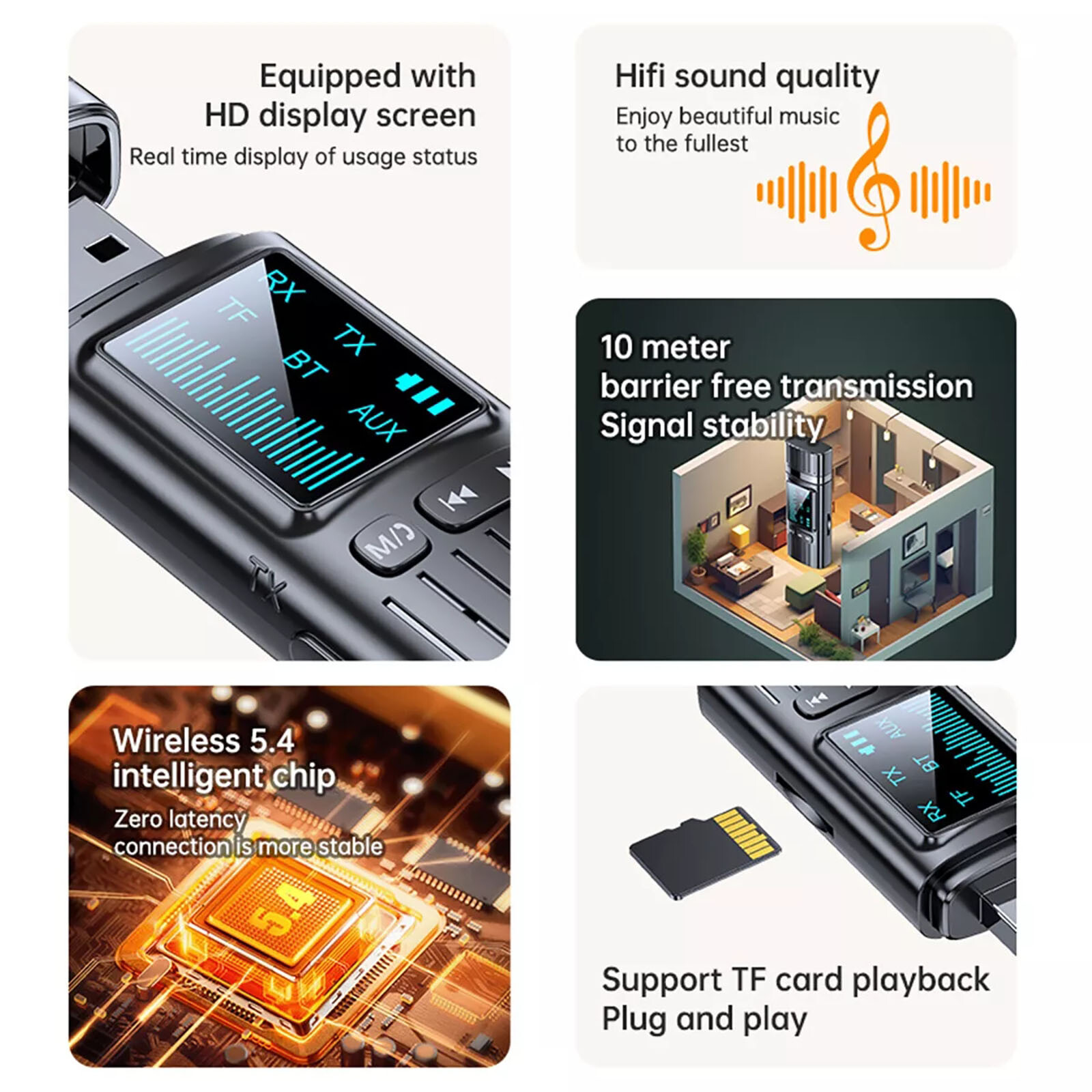 Bluetooth 5.4 Transmitter Receiver 2-in-1 Wireless Audio 3.5mm Jack Aux Adapter