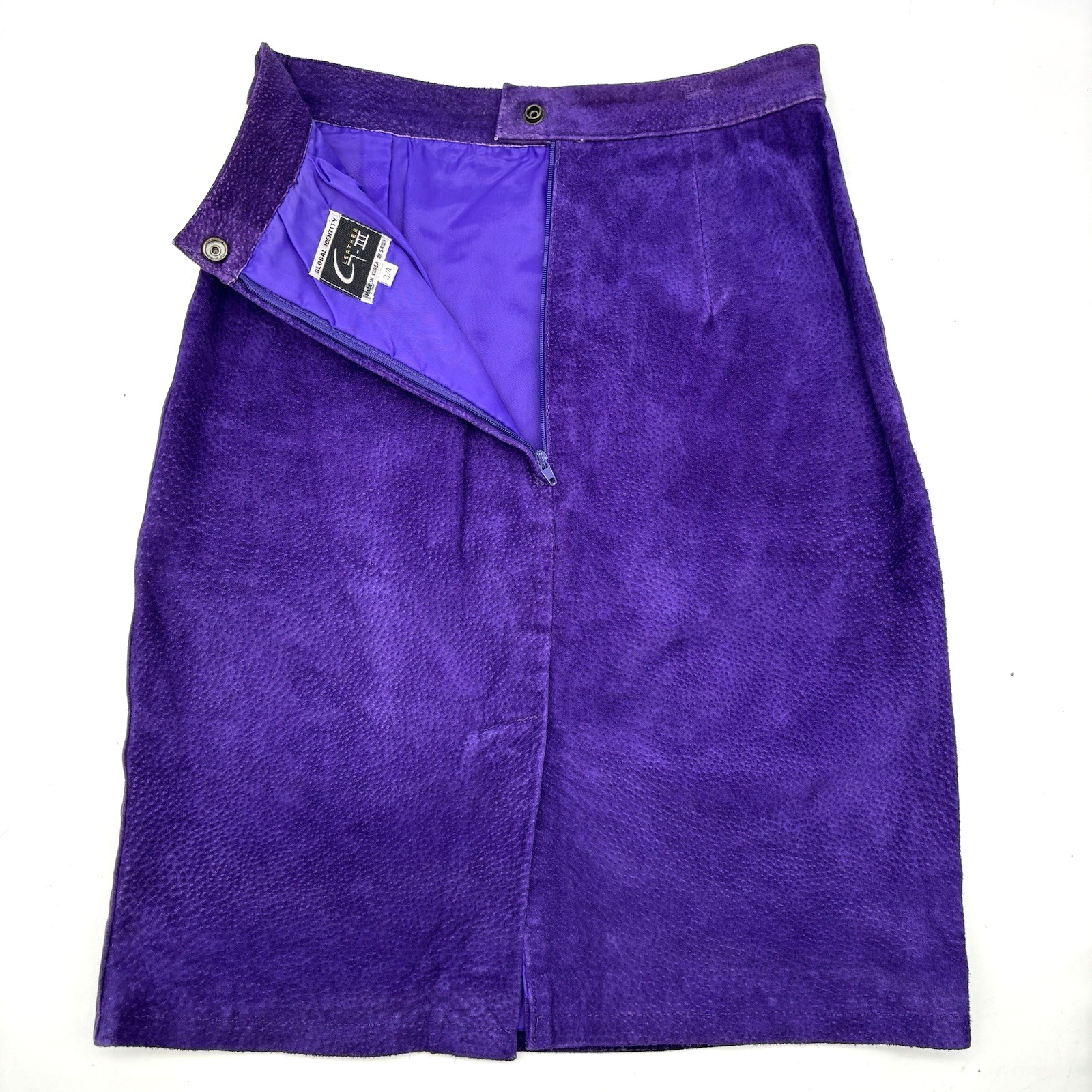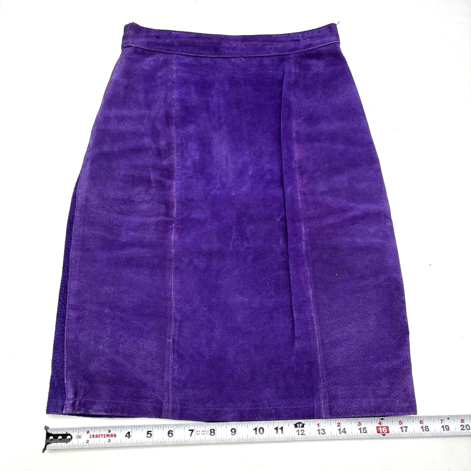 Vintage 80s Global Identity Purple Suede Leather A-line Mini Skirt 3/4 23x21