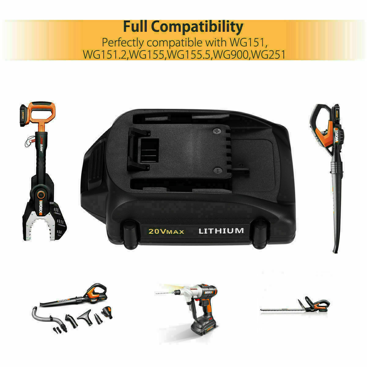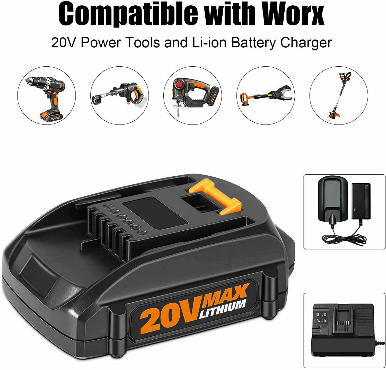 2For WORX 20V MAX 4.0Ah Battery WA3520 WA3525 WA3575 WG155 TOOLS Lithium-ion