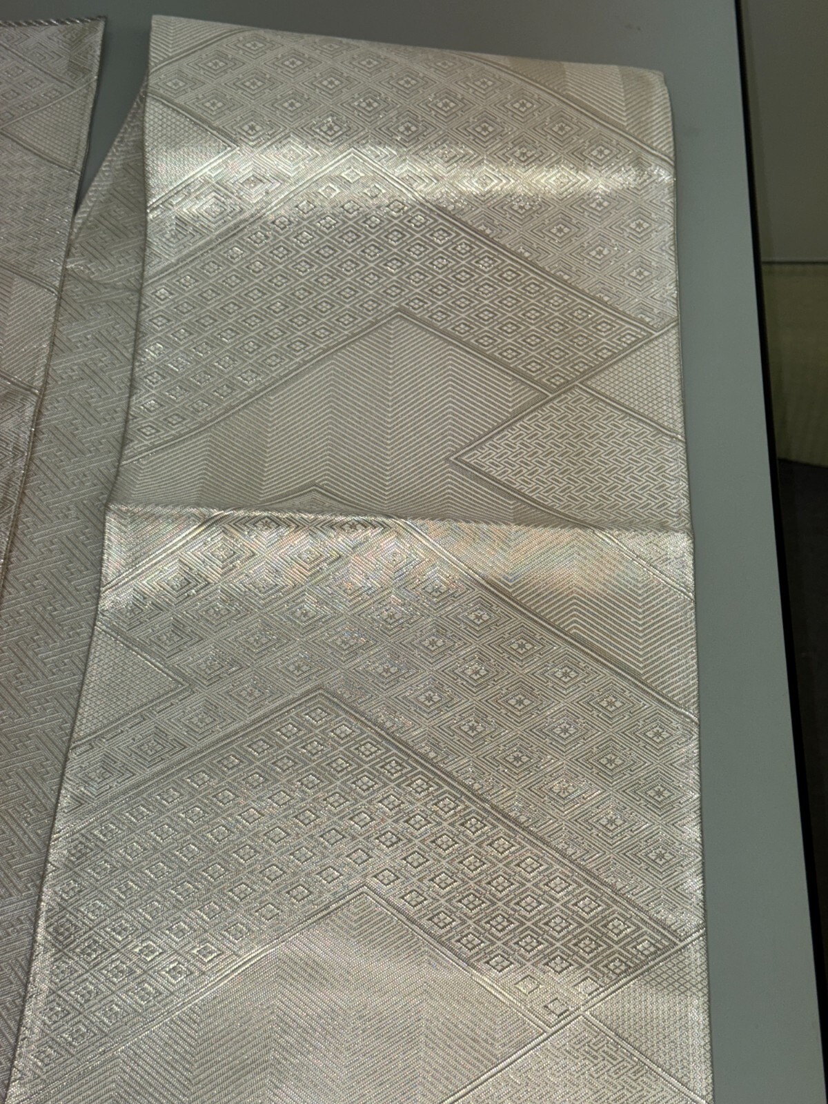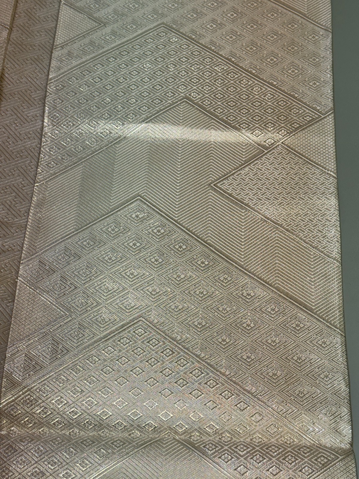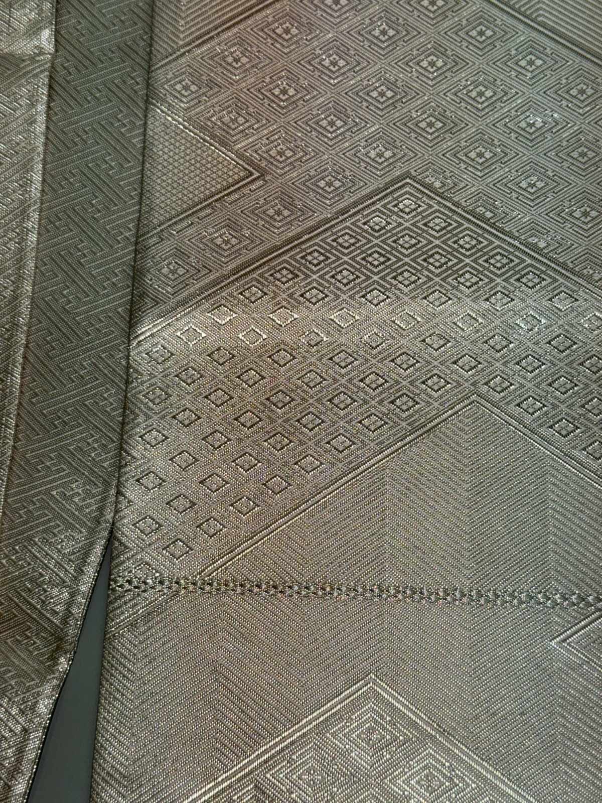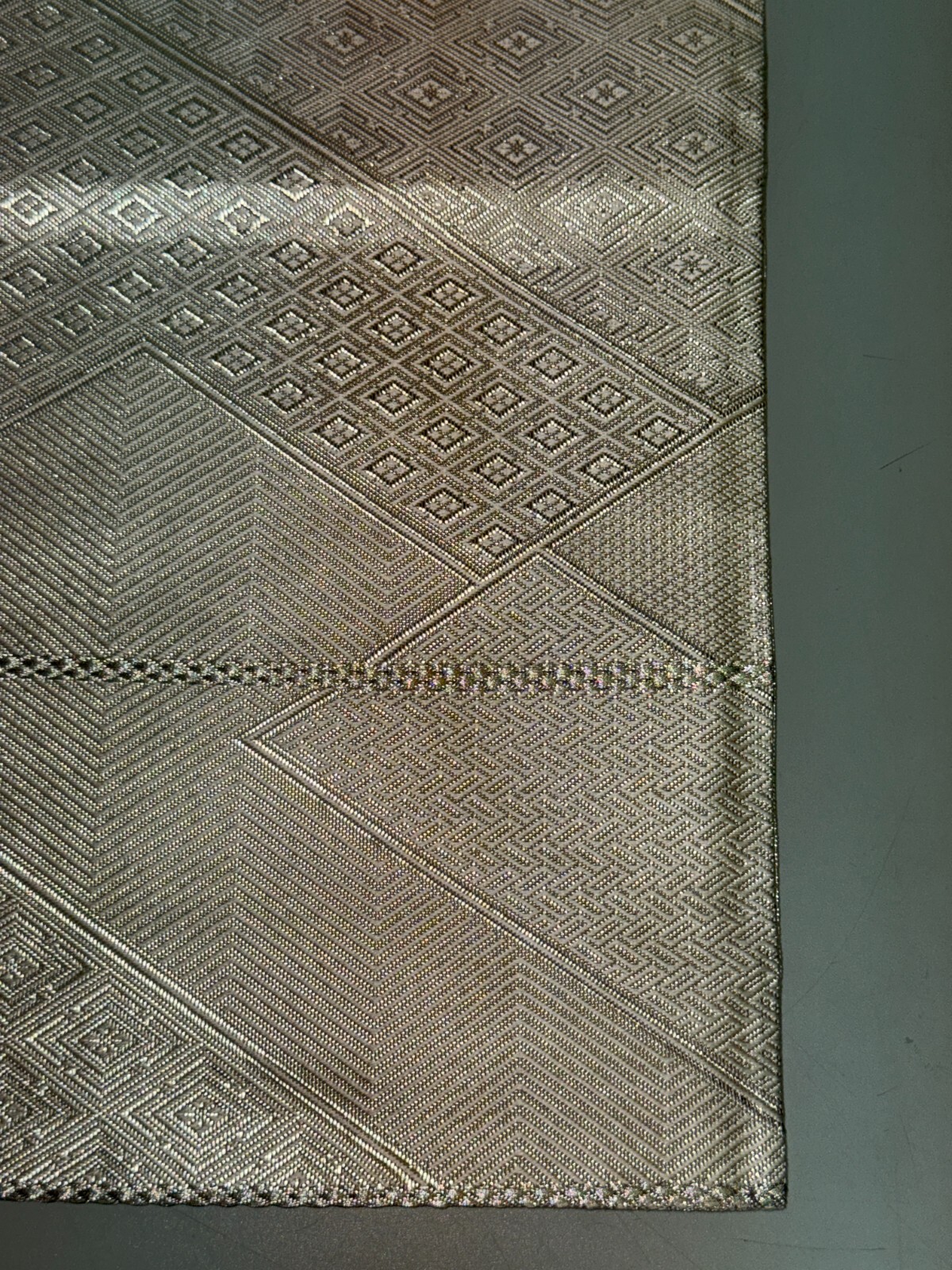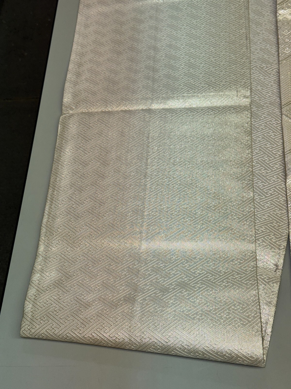 как выглядит Japanese Vintage Kimono Fukuro Obi silk silver expensive reversible 170x11.8in фото