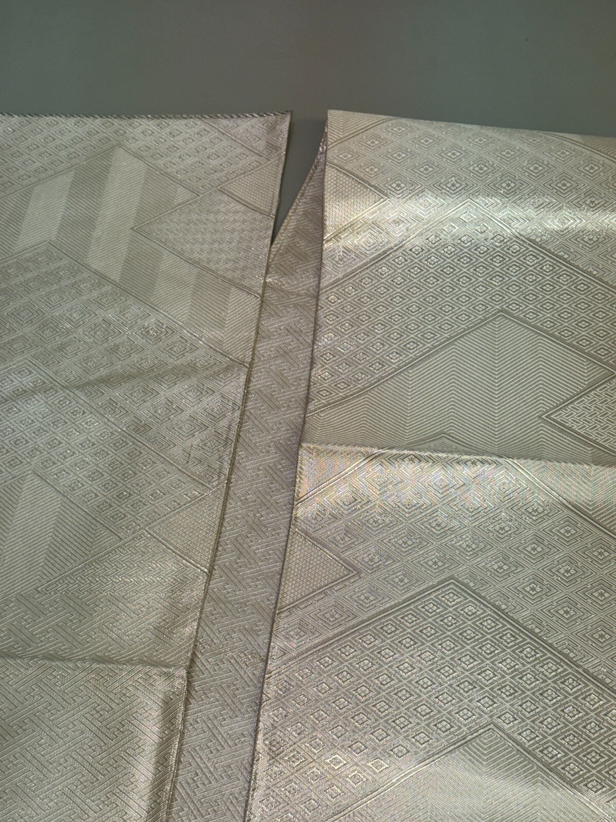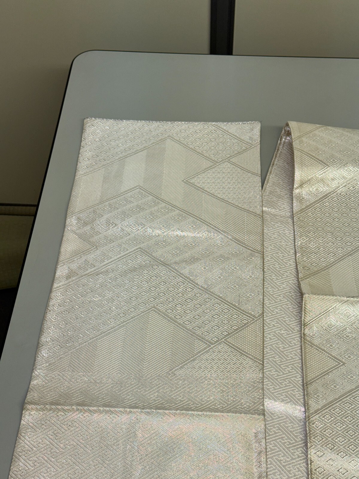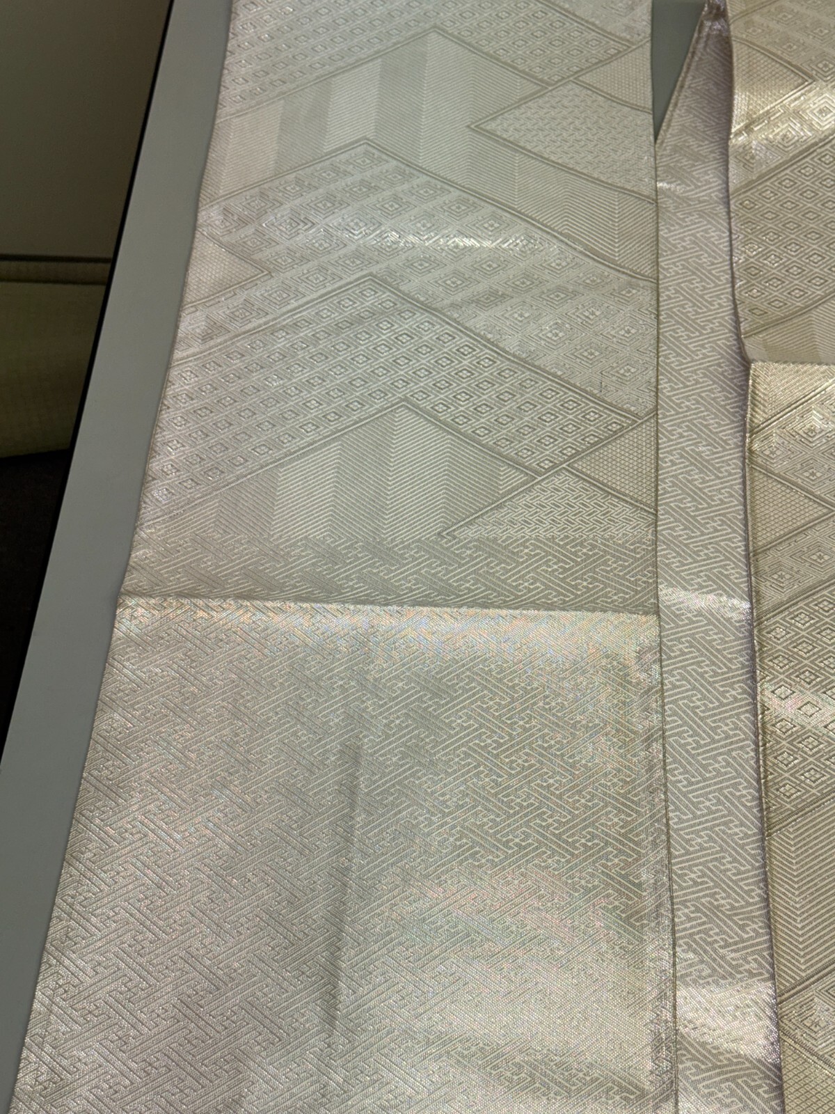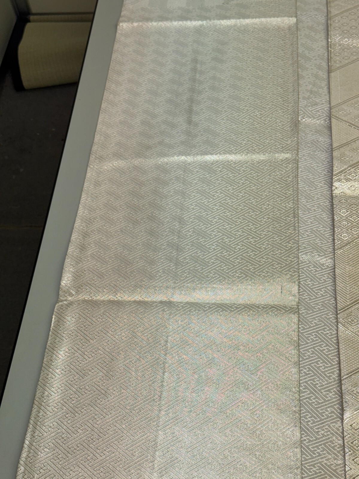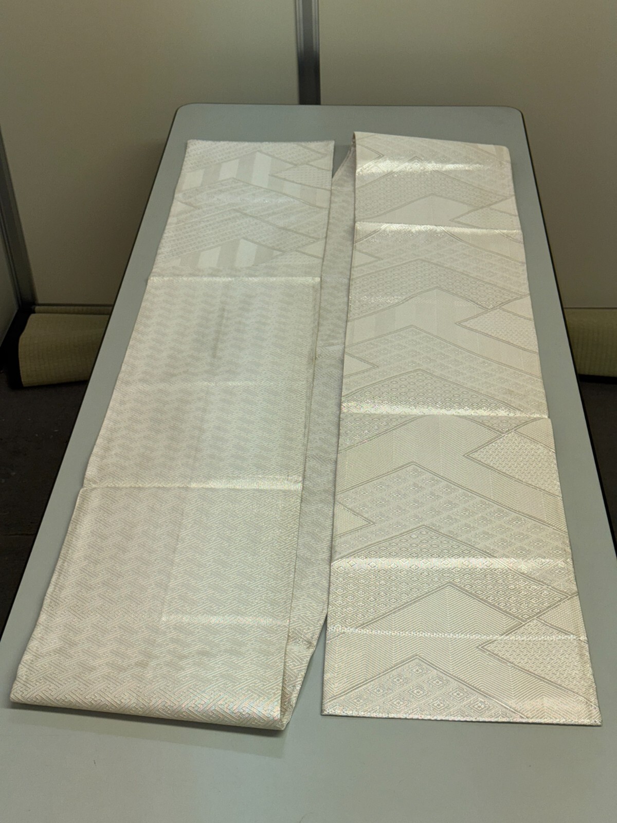 как выглядит Japanese Vintage Kimono Fukuro Obi silk silver expensive reversible 170x11.8in фото