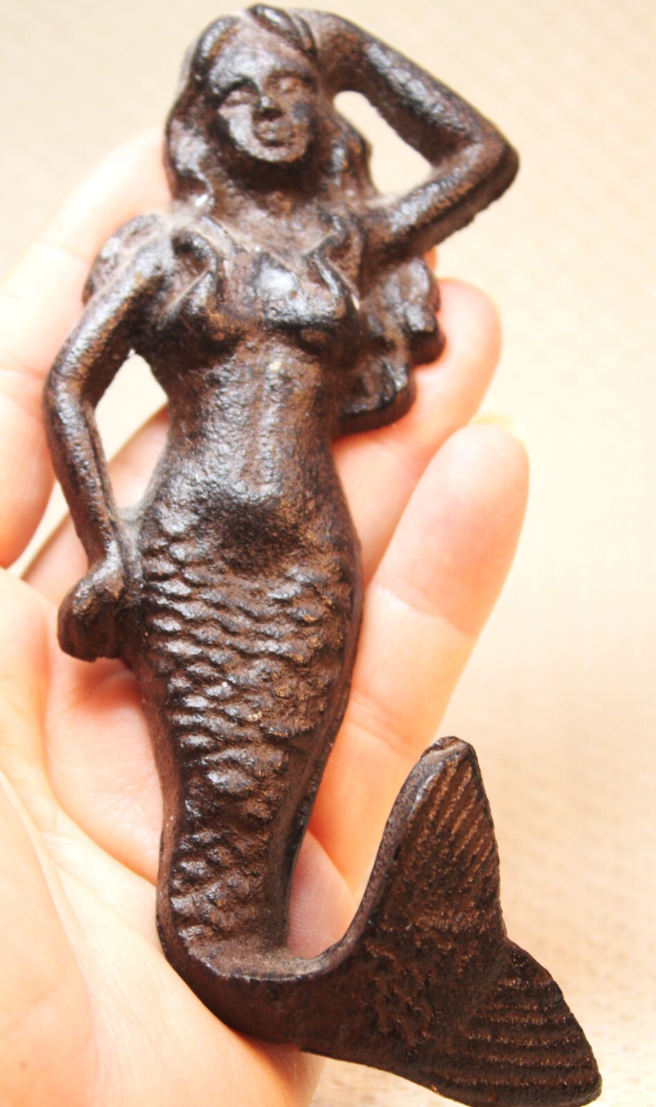 3 Rustic Cast Iron Metal Mermaid Wall Hook Nautical Beach Decor Towel Hanger