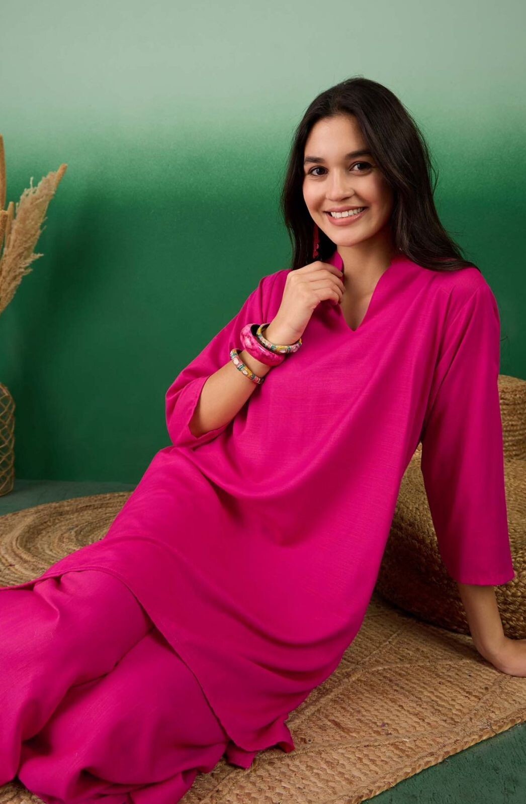 как выглядит Women Plus Size Pink New Kurta Pant Set, 2 Piece Salwar Kameez , SIZE Upto 10XL фото