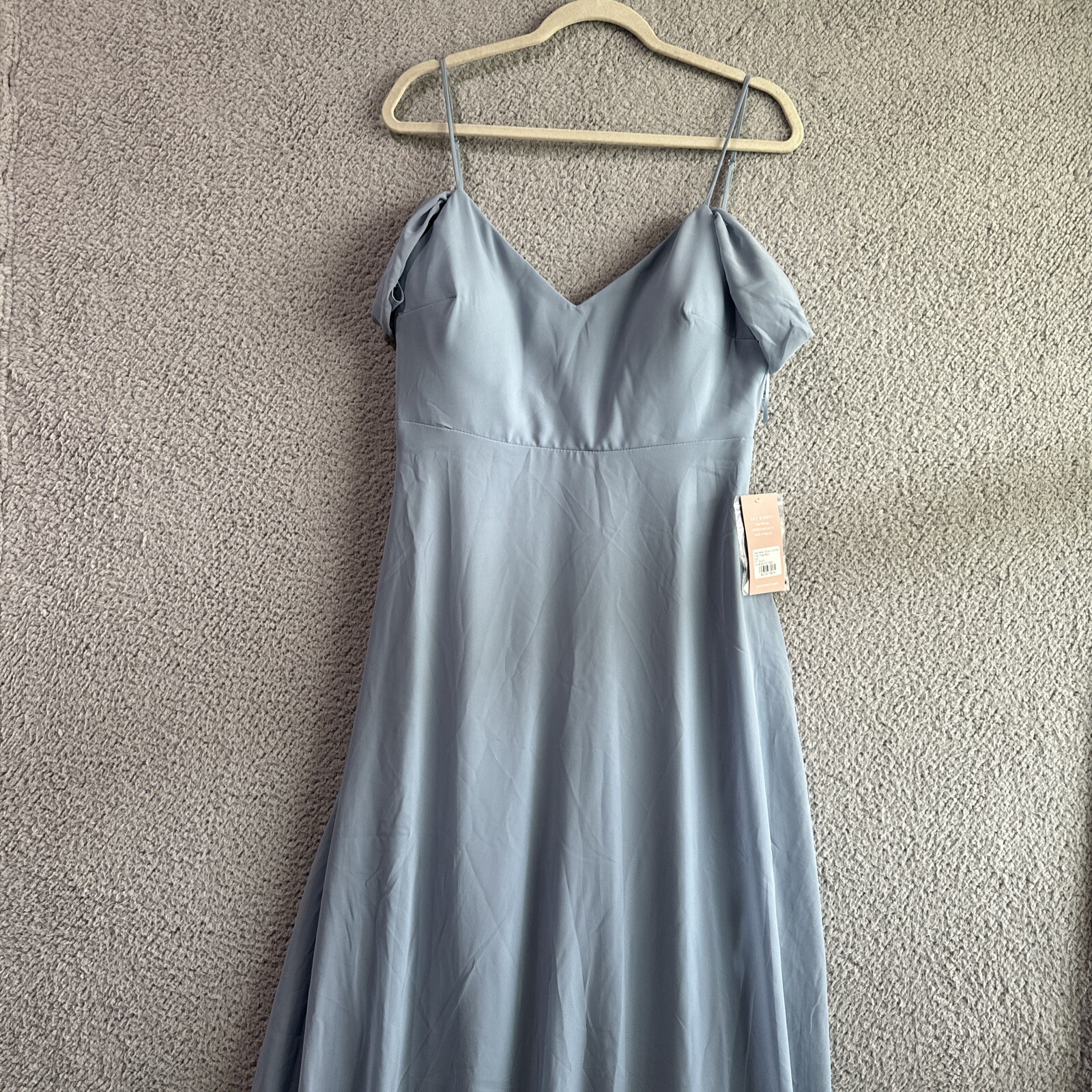 как выглядит NWT Birdy Grey Devin Chiffon Convertible Bridesmaid Dress Dusty Blue Large фото