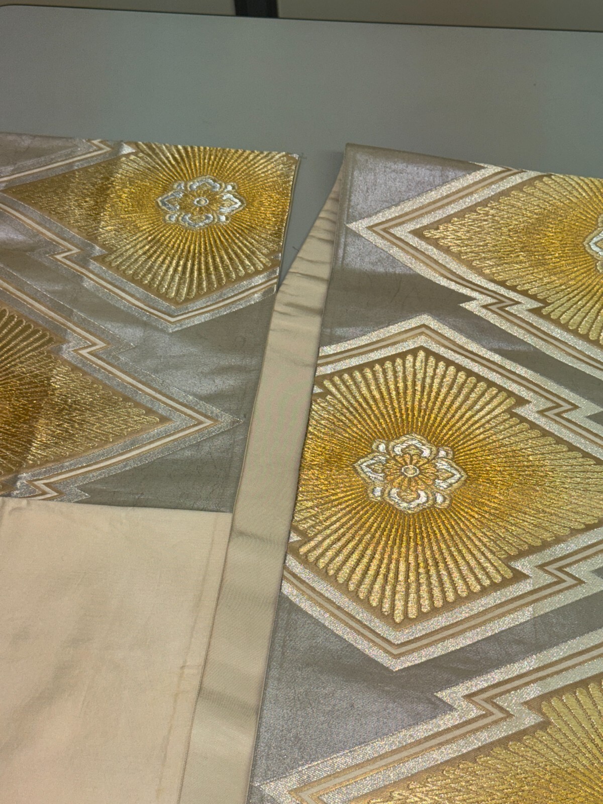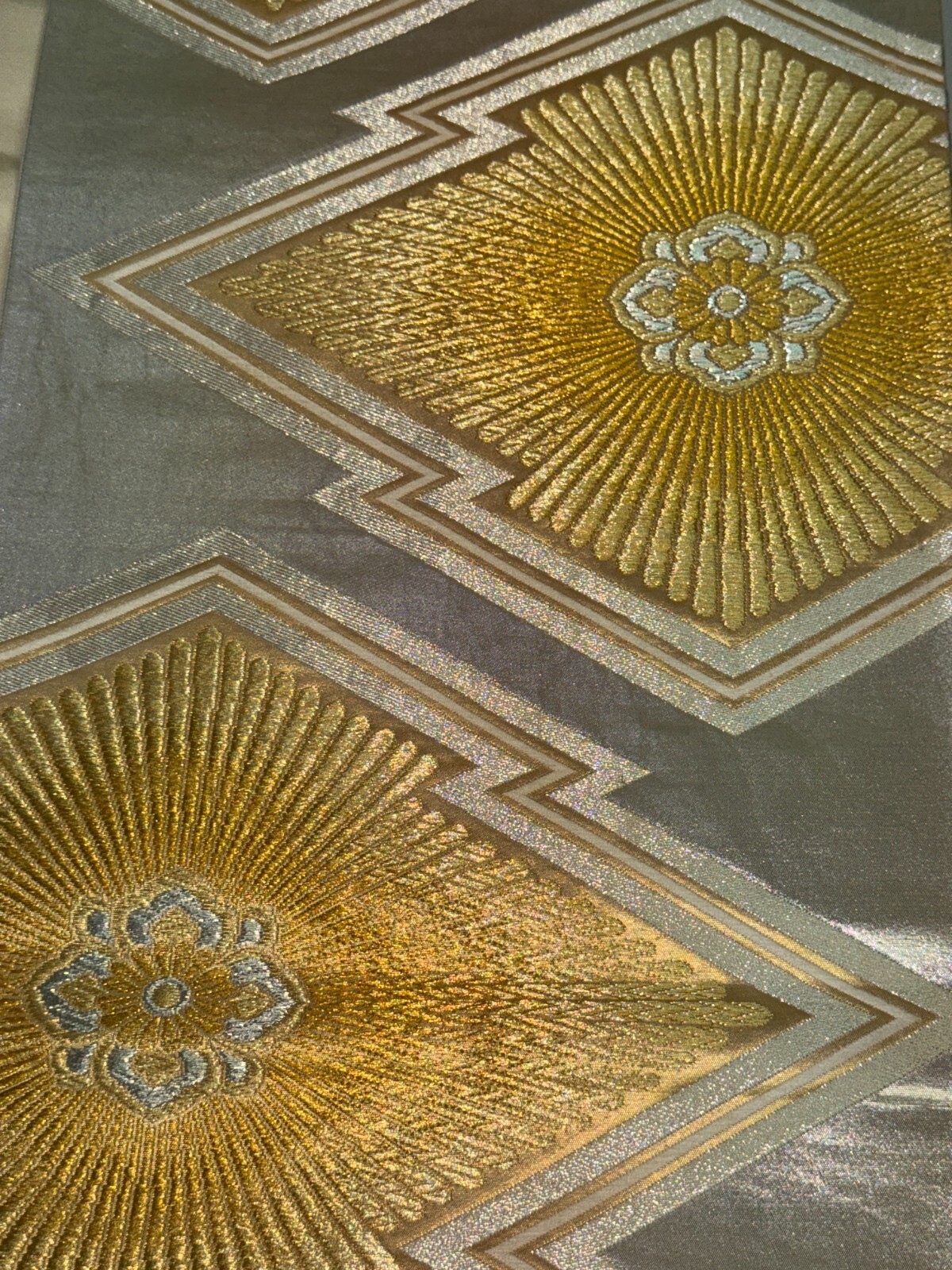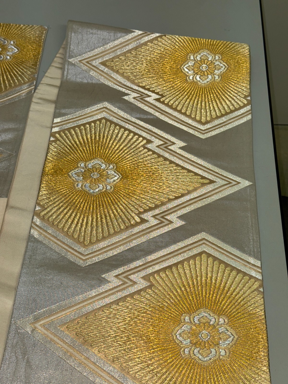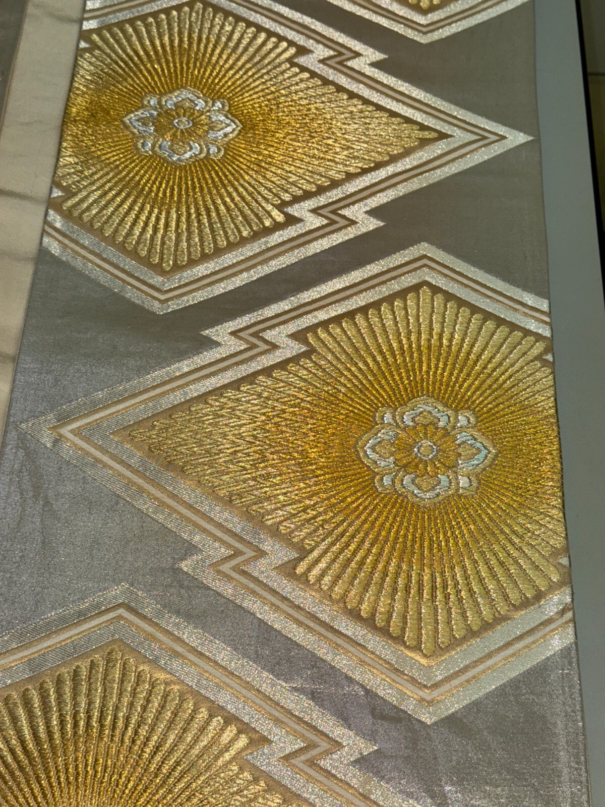 как выглядит Japanese Vintage Kimono Fukuro Obi silk silver expensive embroidery 166.9x12.2in фото