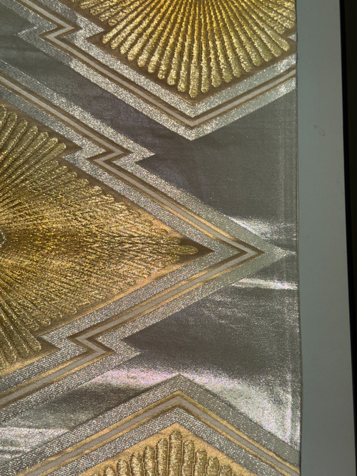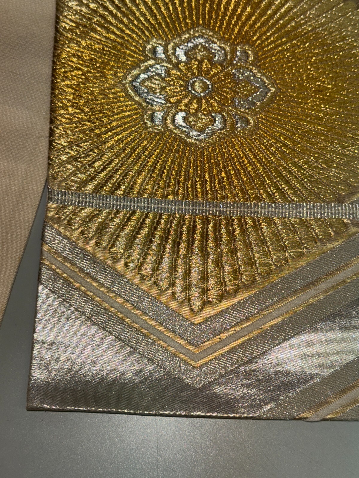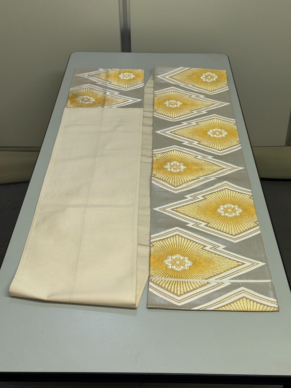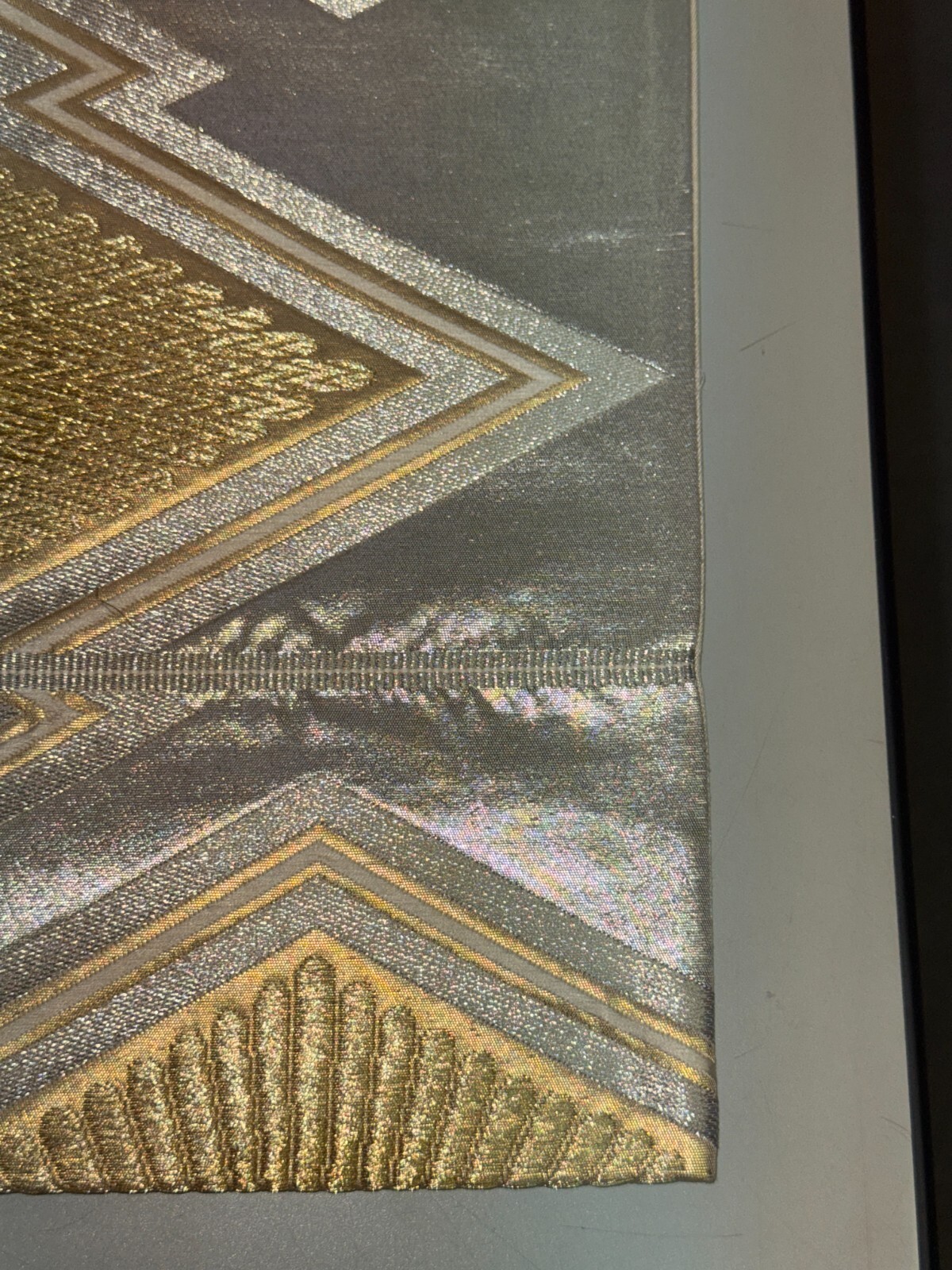 как выглядит Japanese Vintage Kimono Fukuro Obi silk silver expensive embroidery 166.9x12.2in фото
