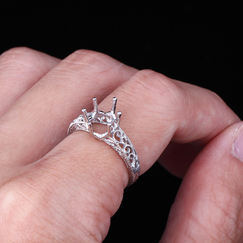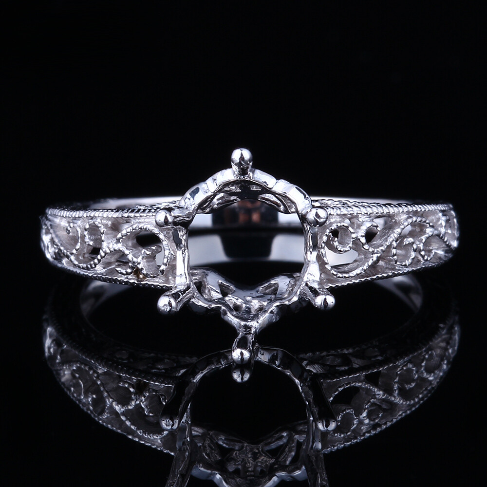 Antique Vintage 9x7mm Oval Cut Nouveau Setting Sterling Silver Semi Mount Ring