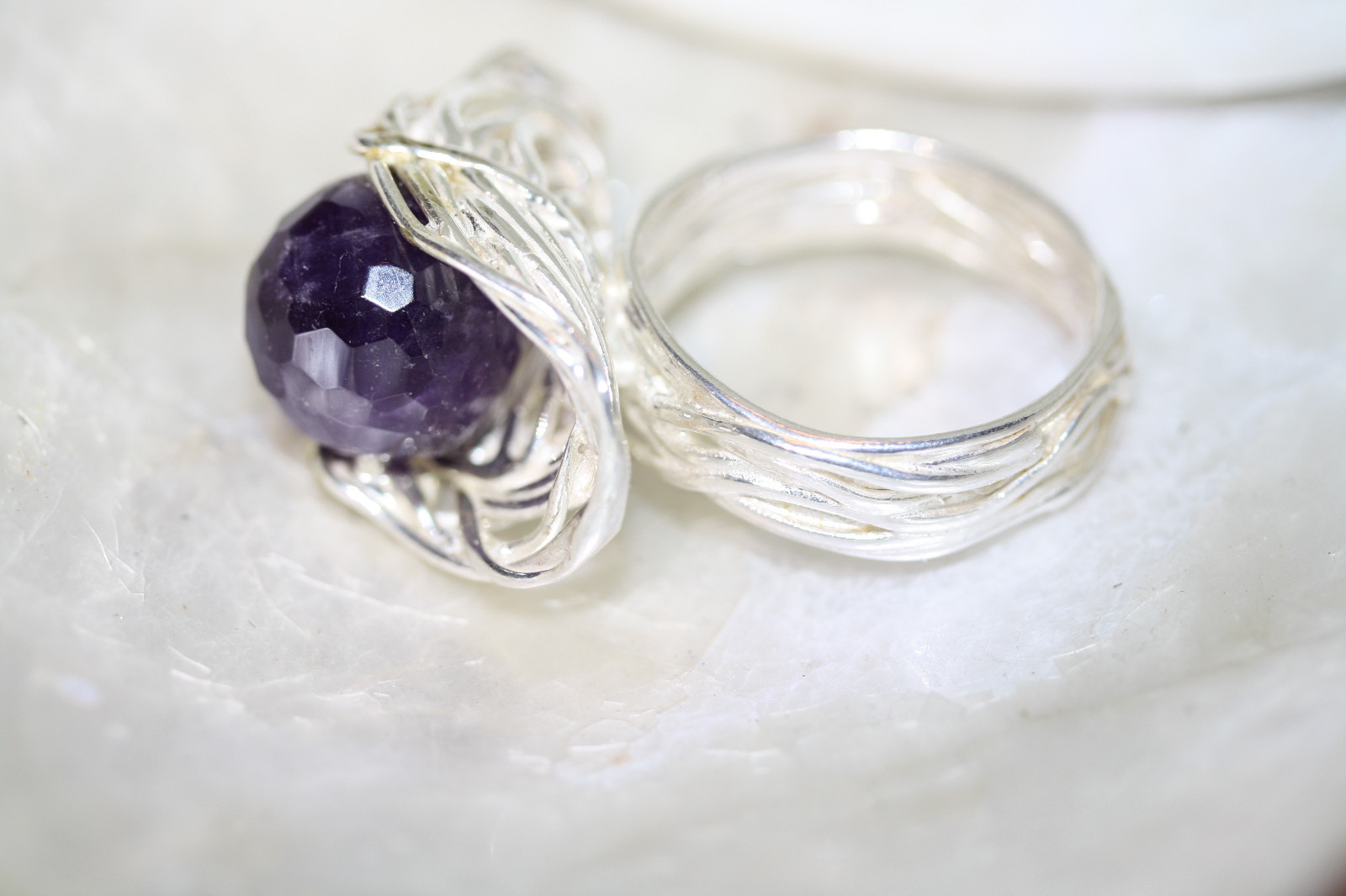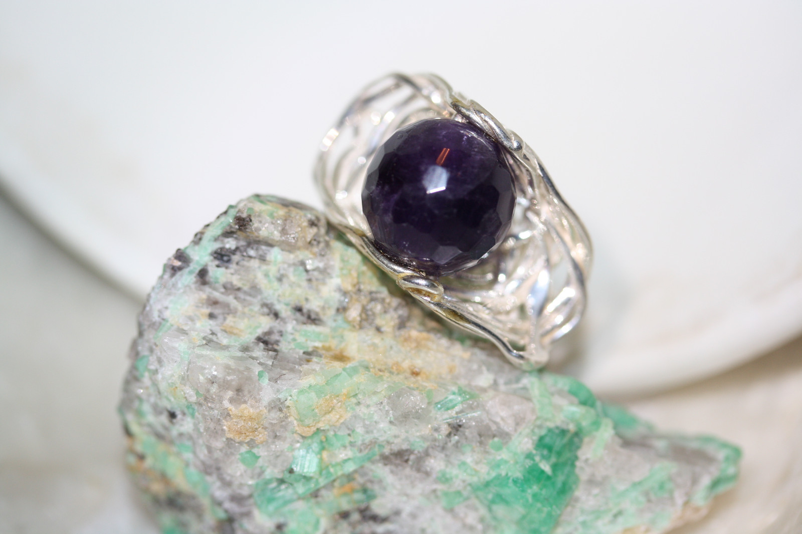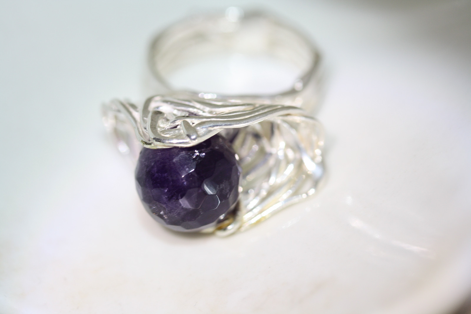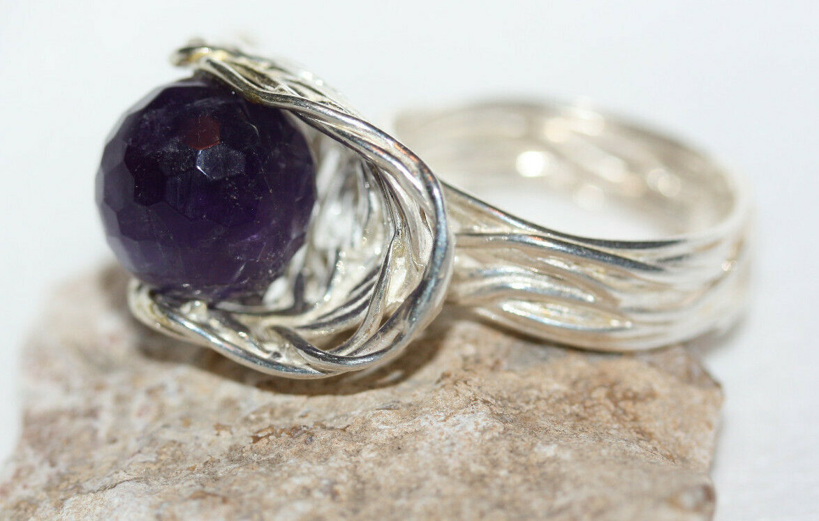 как выглядит Unique Womens Weaving Basket Globe Amethyst New 925 Sterling Silver Ring Sz 9 фото