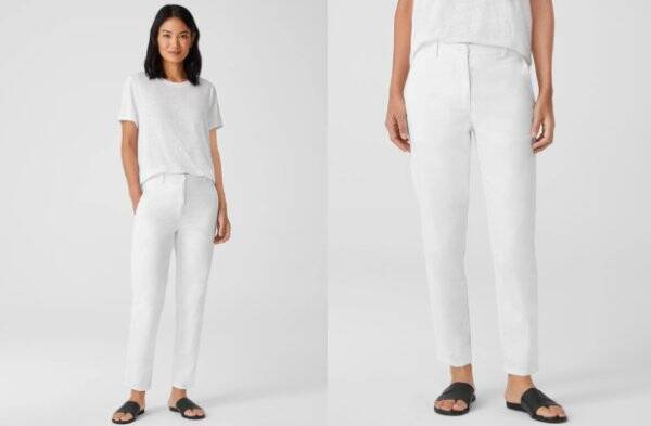 как выглядит NWT White SZ 4 Eileen Fisher Cotton Hemp White Tapered Ankle Pant фото