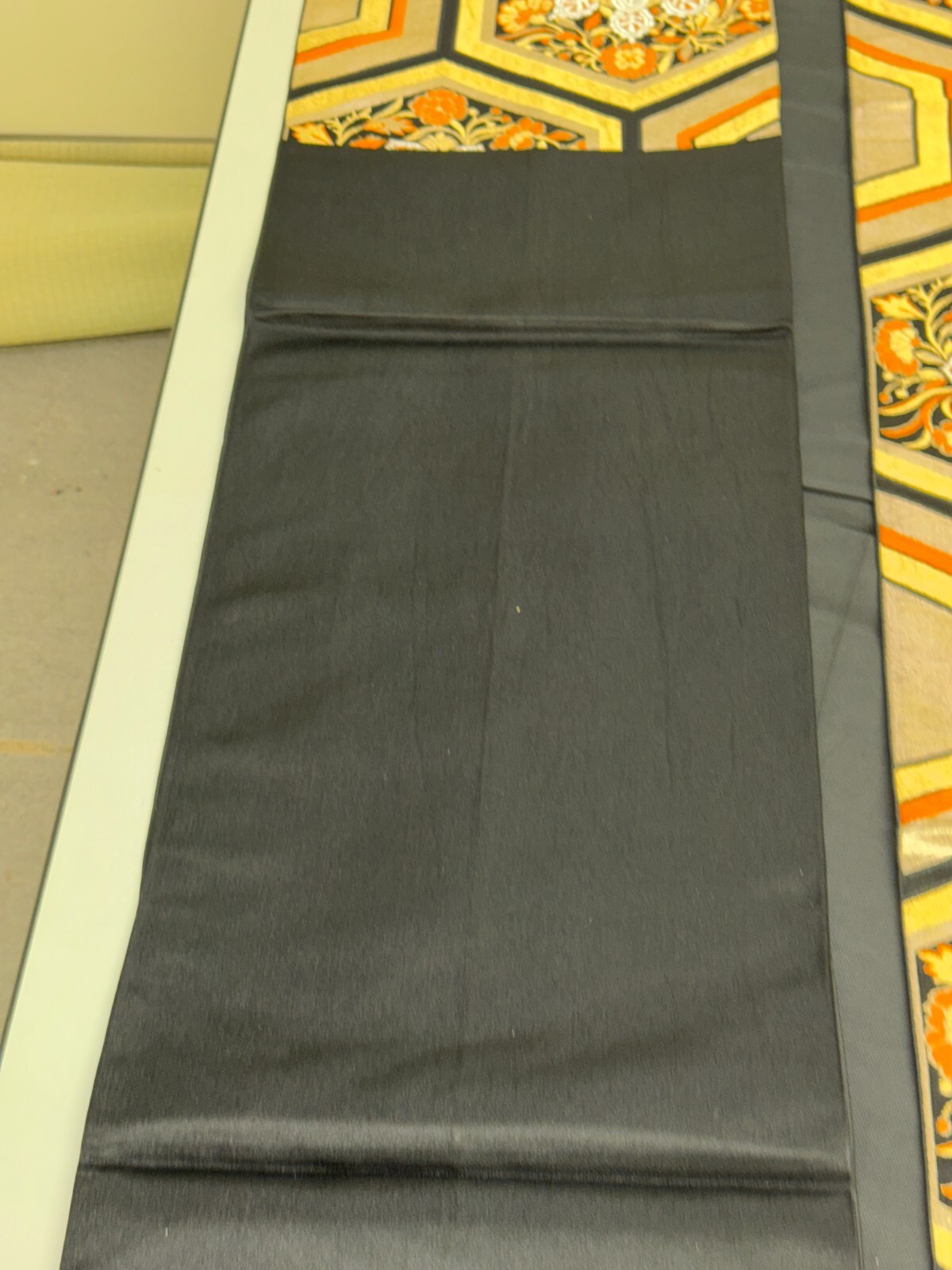 как выглядит Japanese Vintage Kimono Fukuro Obi silk black expensive embroidery 162.2x12.2in фото