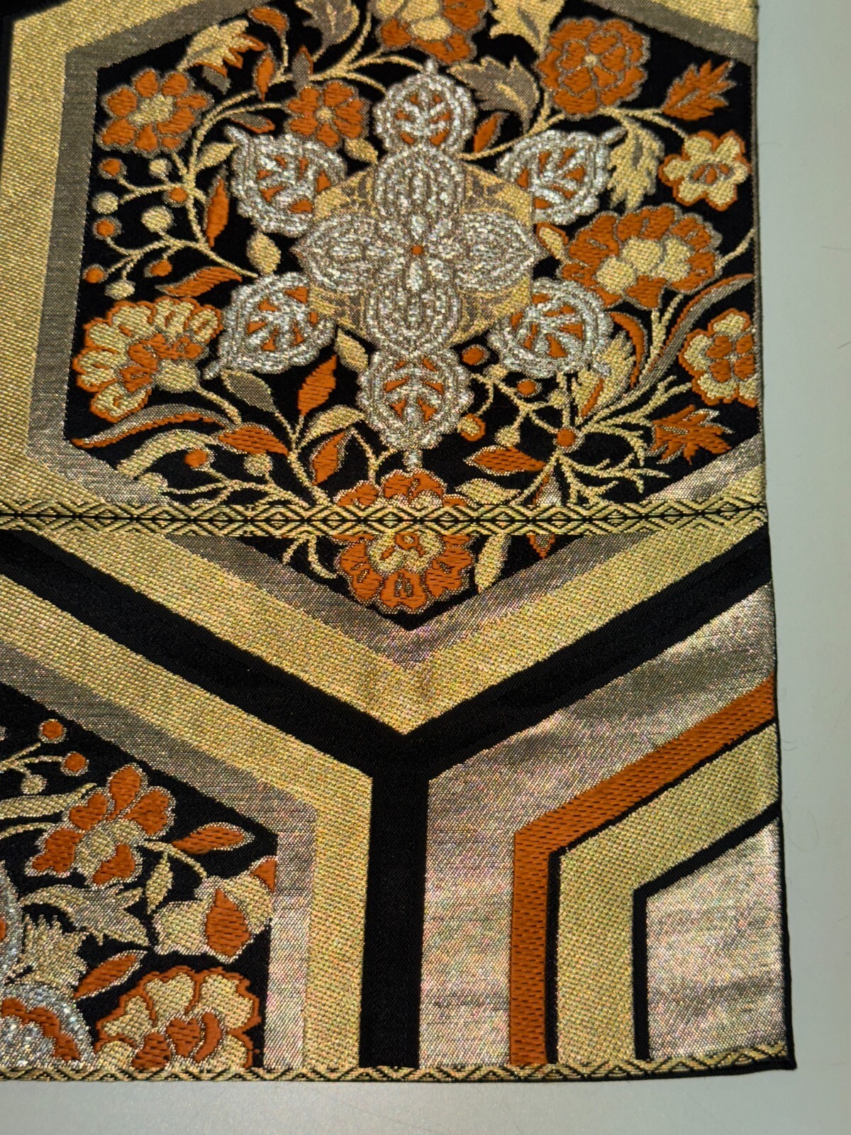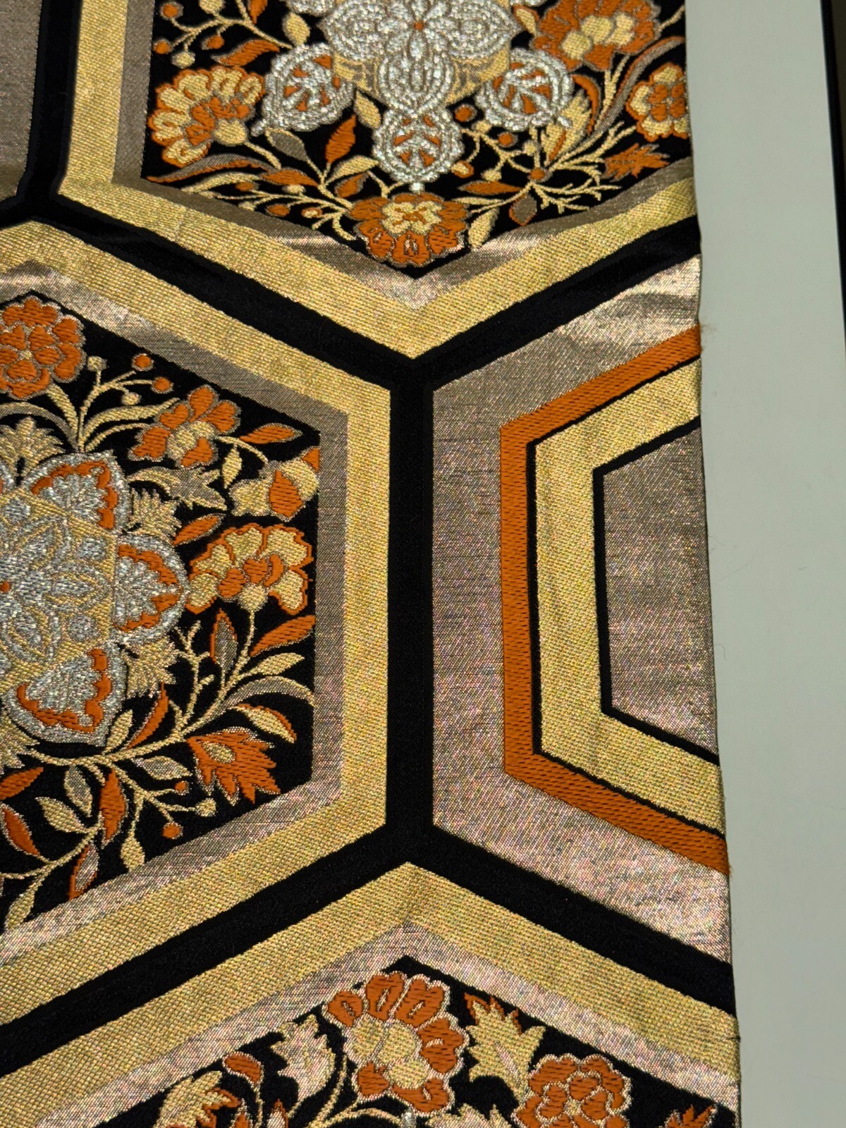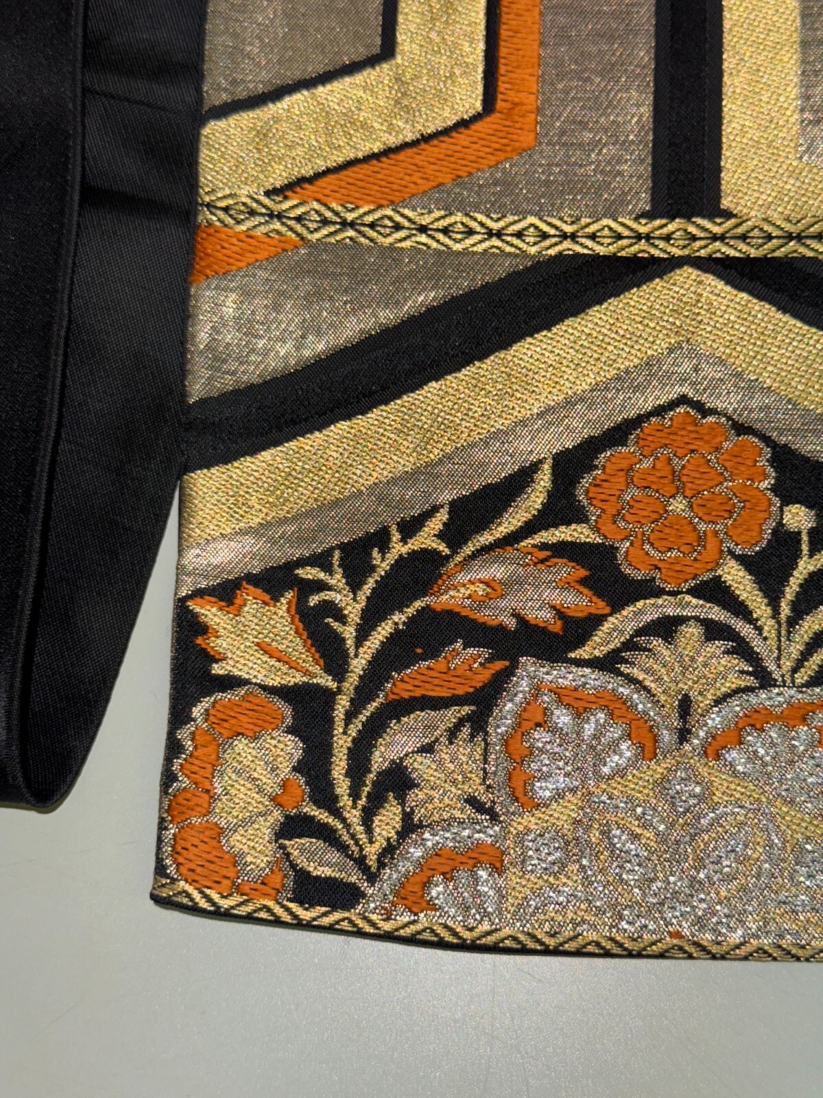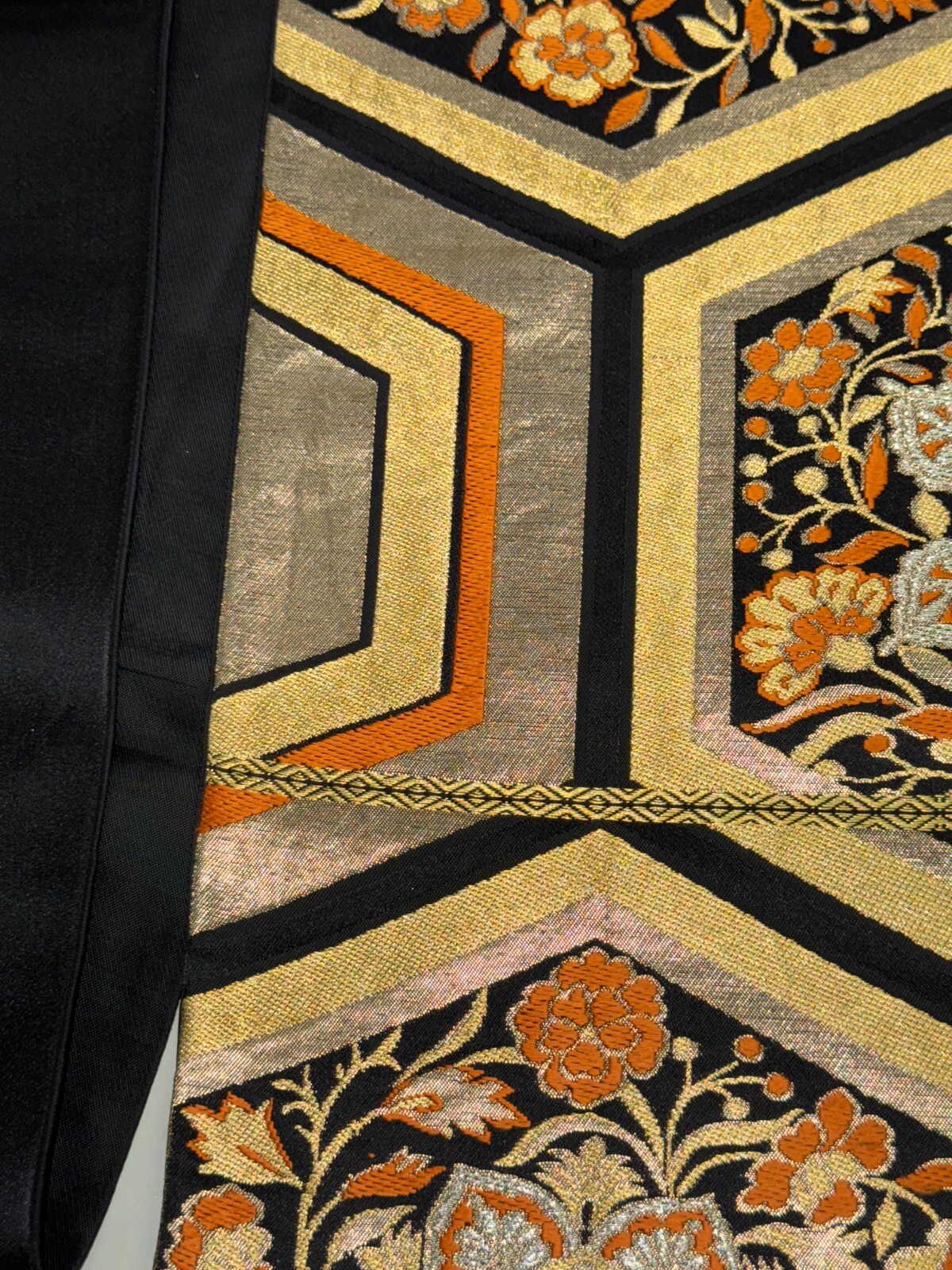 Japanese Vintage Kimono Fukuro Obi silk black expensive embroidery 162.2x12.2in