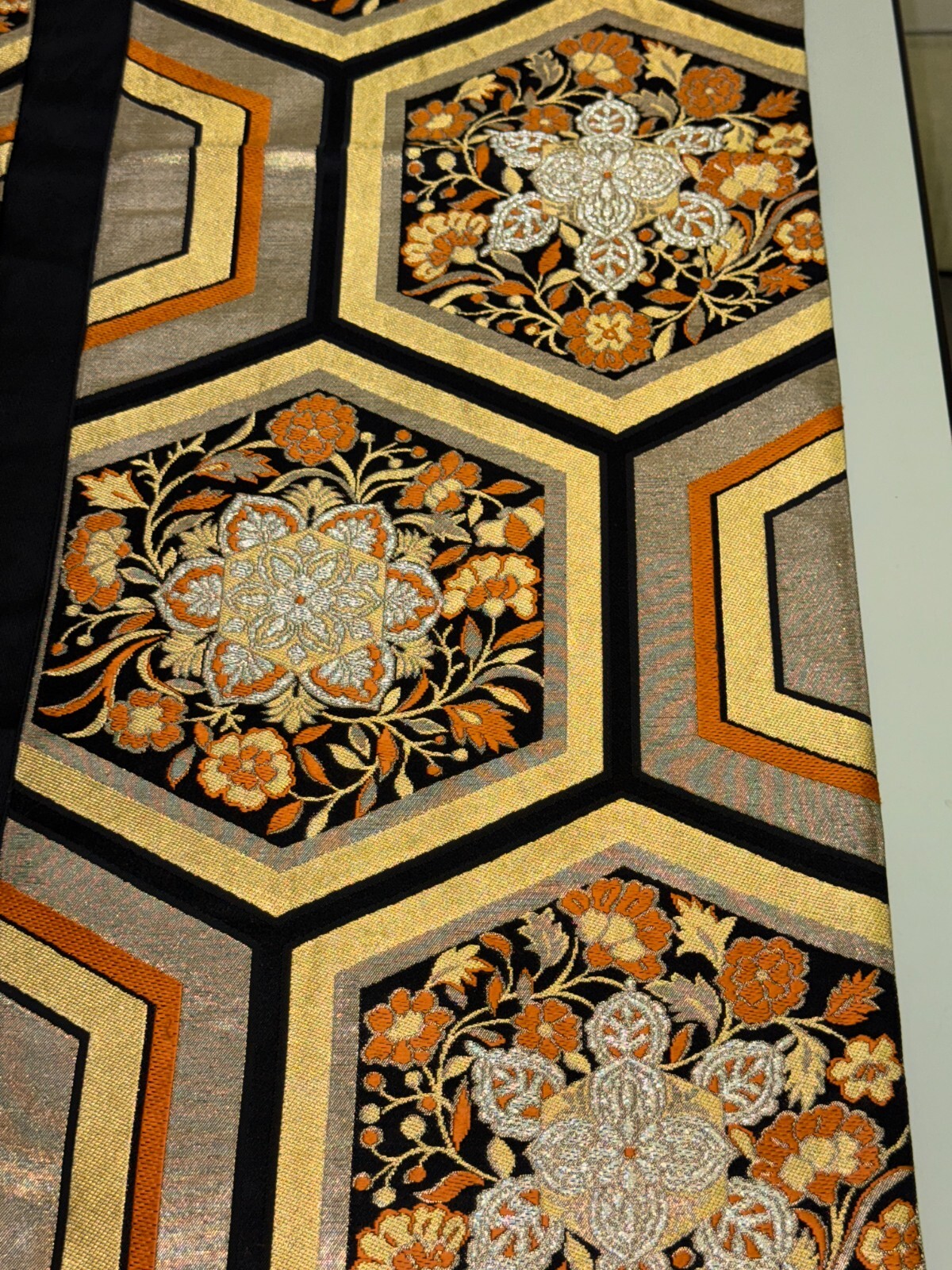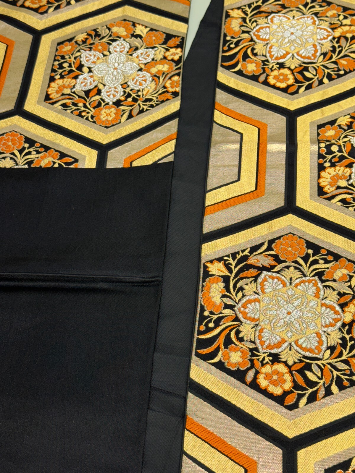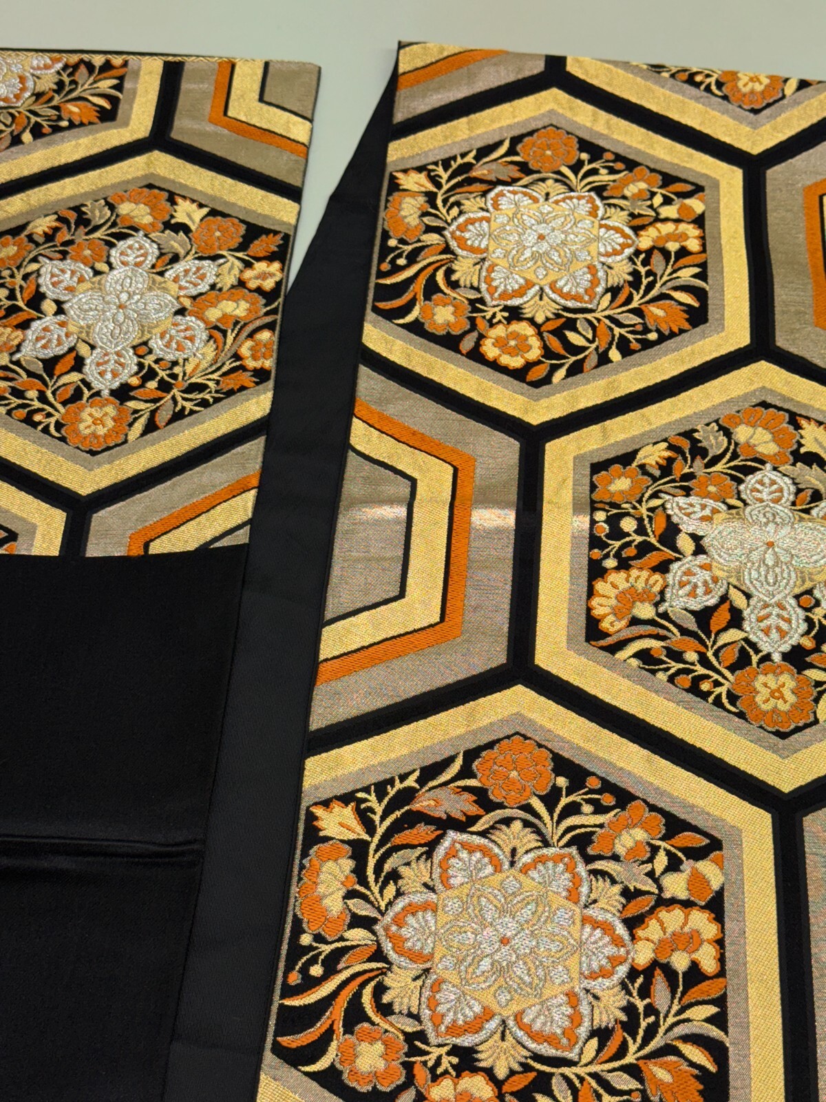 Japanese Vintage Kimono Fukuro Obi silk black expensive embroidery 162.2x12.2in