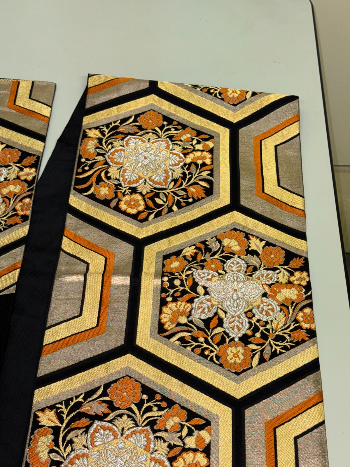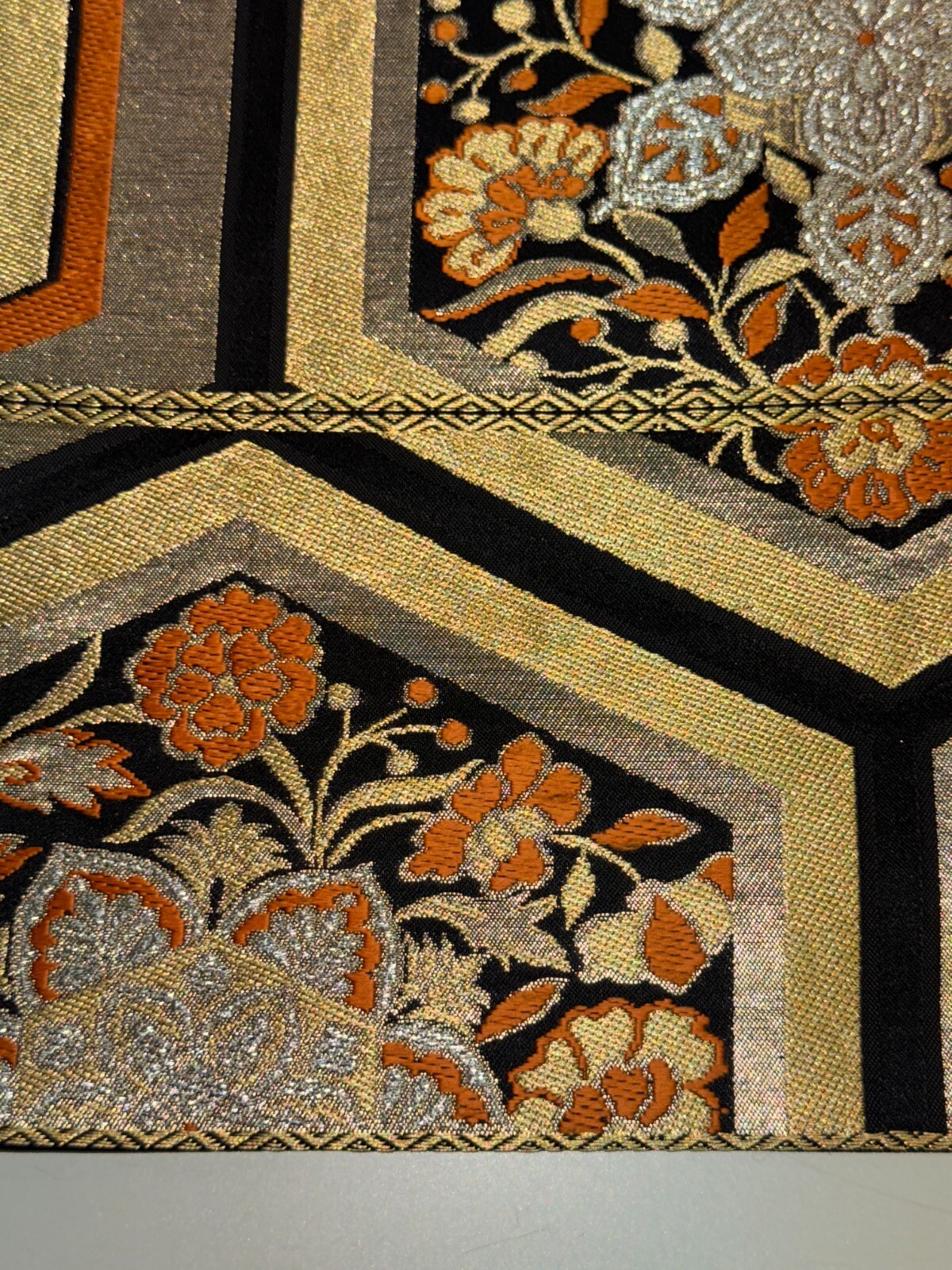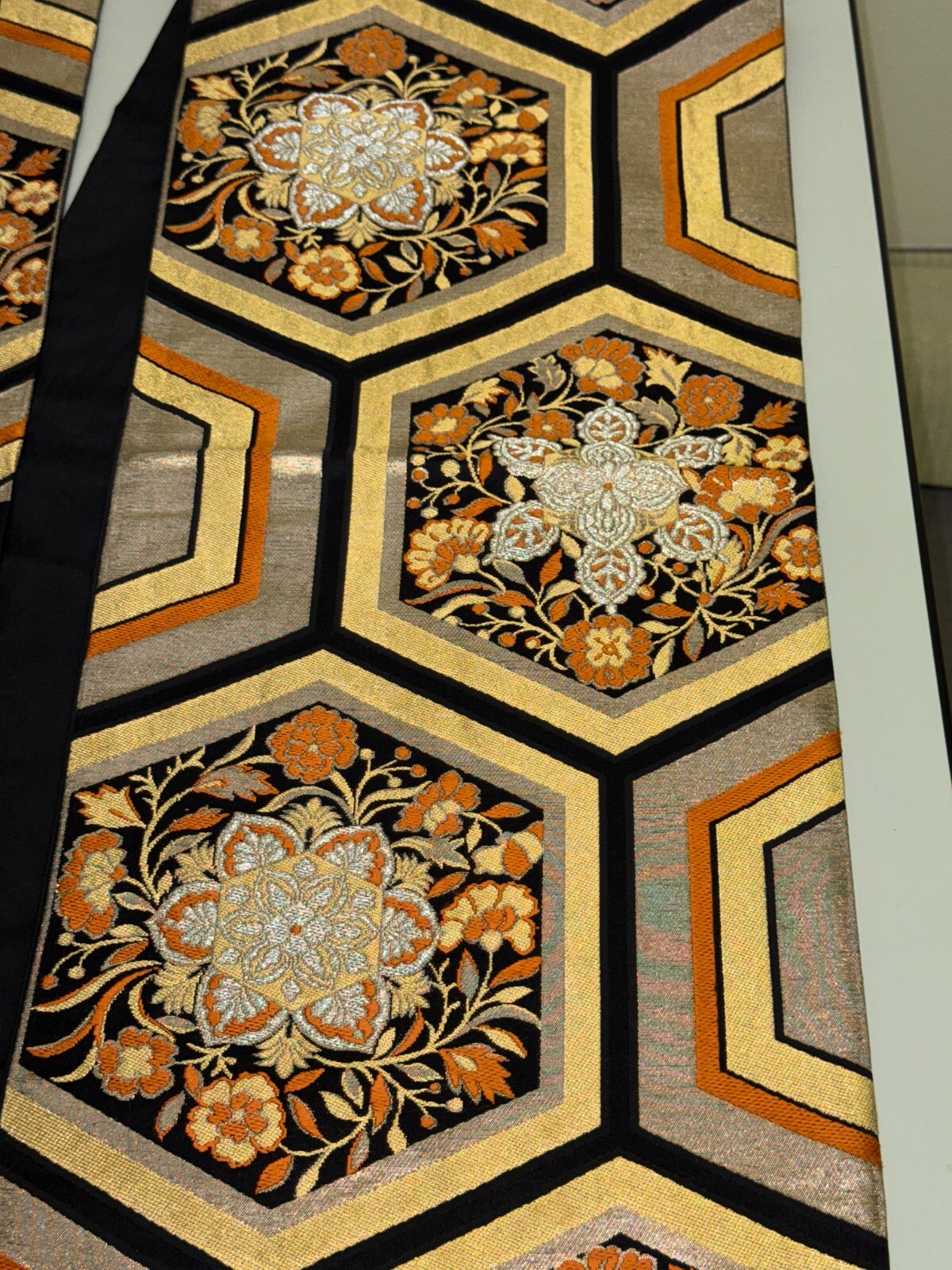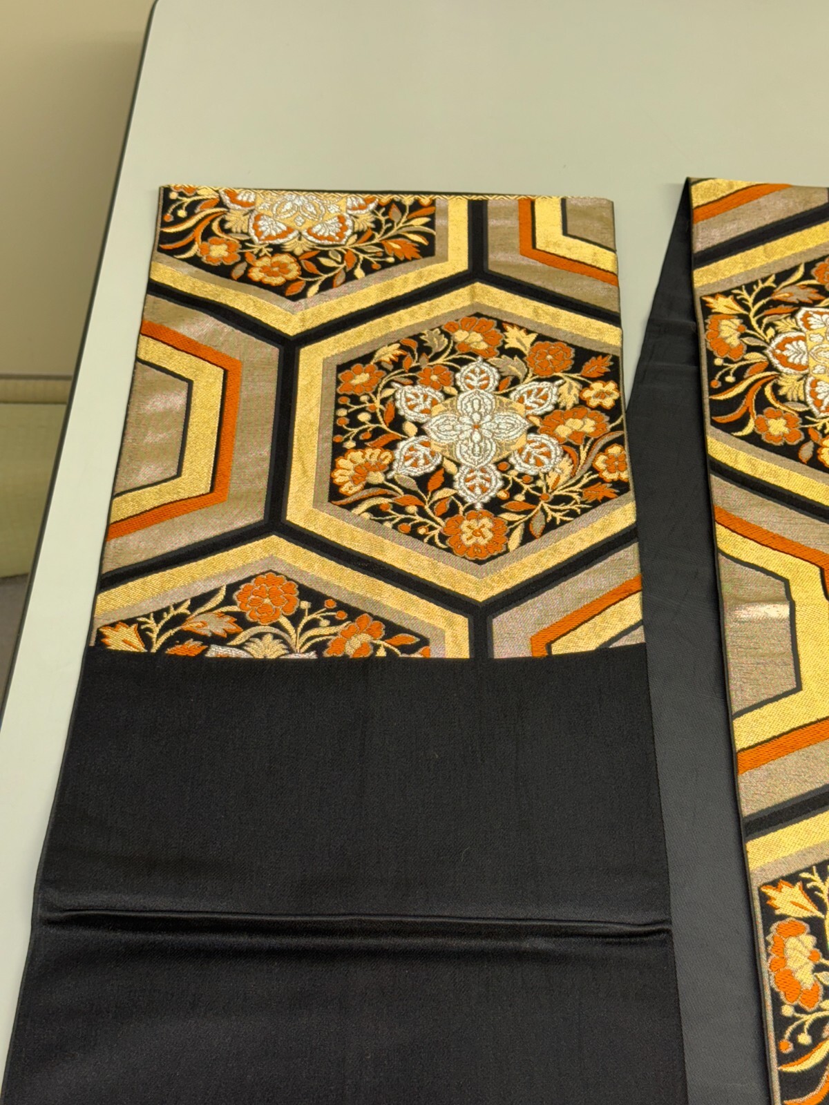 Japanese Vintage Kimono Fukuro Obi silk black expensive embroidery 162.2x12.2in