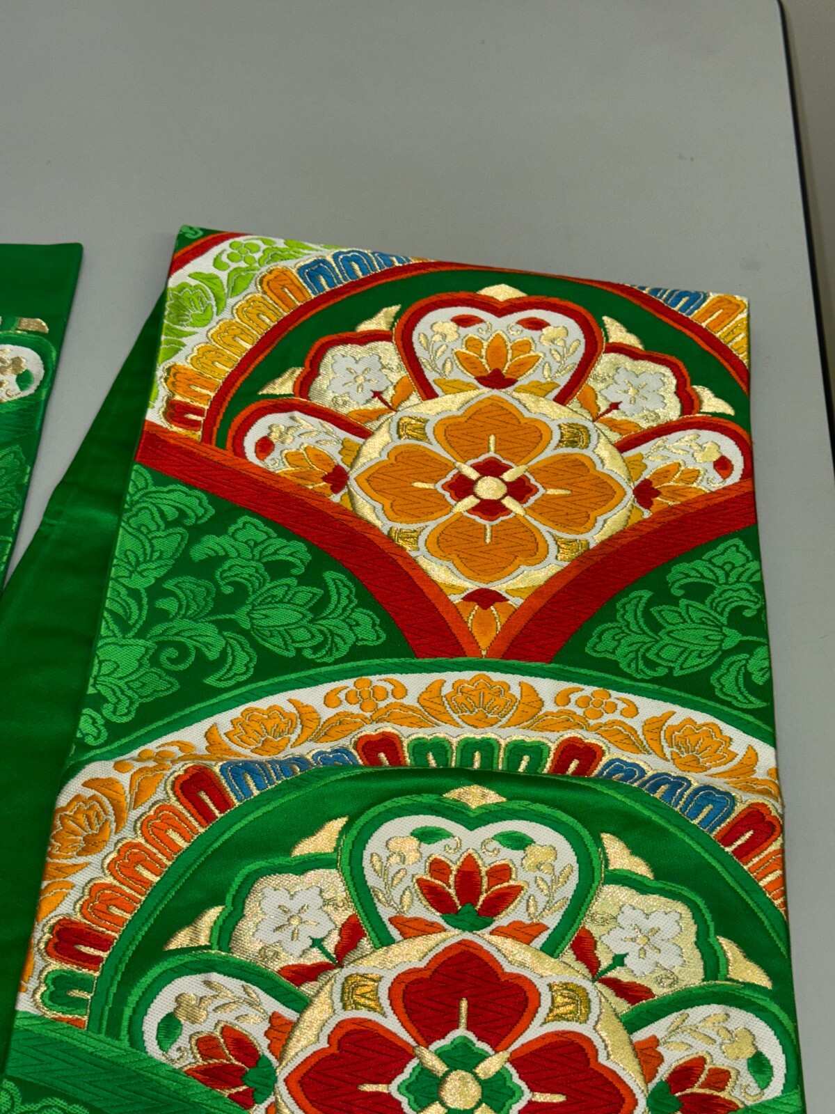 как выглядит Japanese Vintage Kimono Fukuro Obi silk green expensive embroidery 168.5x11.8in фото